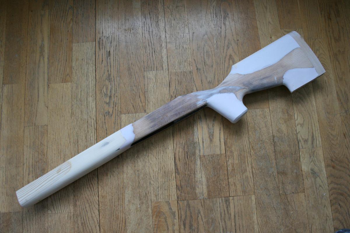 Publicerat Februari 9, 201313 yr Författare Det går faktiskt att få rätt snygga linjer med lite idogt spacklande och filande. Blir den bara ordentligt lackad kan den bli riktigt fin. Det som kommer att skämma är bakkappan. Stockens bakkappa blir väldigt hög, frågan är hur jag gör med Pachmeyern jag ska skruva på, den blir sittande som en svulst i överkanten av stocken. Nåväl, funktion går före estetik i detta fall.