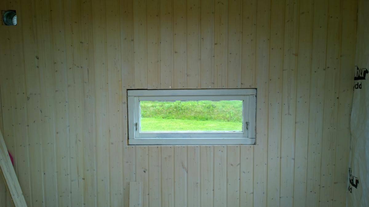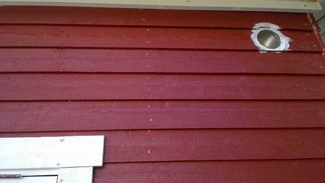 Borrsågat hål för spirorör o gjort infällning för spjället på baksidan av kojan.