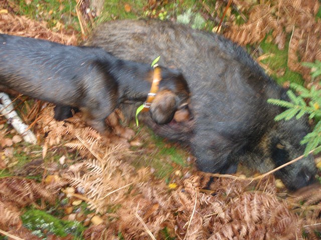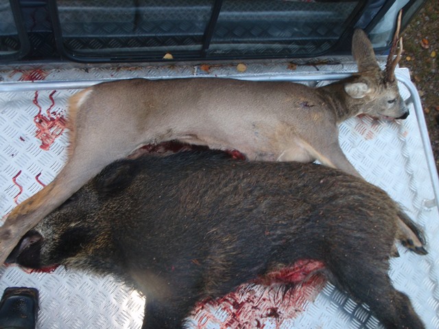 Publicerat Oktober 26, 201312 yr Lite jakt idag... älgar hittade vi en 6-7 st... vi men inget skjutbart. En kviga/ko gick över till grannen som sköt, varsågod ... Största behållningen idag va Signes drev på gris men inte fan blev den skjuten... En svart mindre gris, Va ståndskall först men sen gick det loss, drev och återgång tog väl en kvart nånting. ja o så en jävla massa skogsfågel... De tycker Signe är kul.... o när det smäller... hon jagade inte kvigan/kon men när det smal hos grannen följde hon den löpan ut ur marken... som väl va eller inte... så bröt hon innan hon va framme vid den älgen. Vilket iofs va bra.. hade förmodligen fått hämta henne annars...
