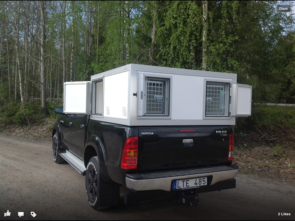 Publicerat Maj 25, 201312 yr Författare 22500 för två hundar! http://vallavagnen.se/index.php/kaapor Och sen en släde under hunburarna som går att dra ut och lägga några grisar på..... Jag pratade med dom om det på Elmia o det är för en enklare box som man ställer på flaket. Jag trodde också att det var för den HV 2-1 men så var det inte