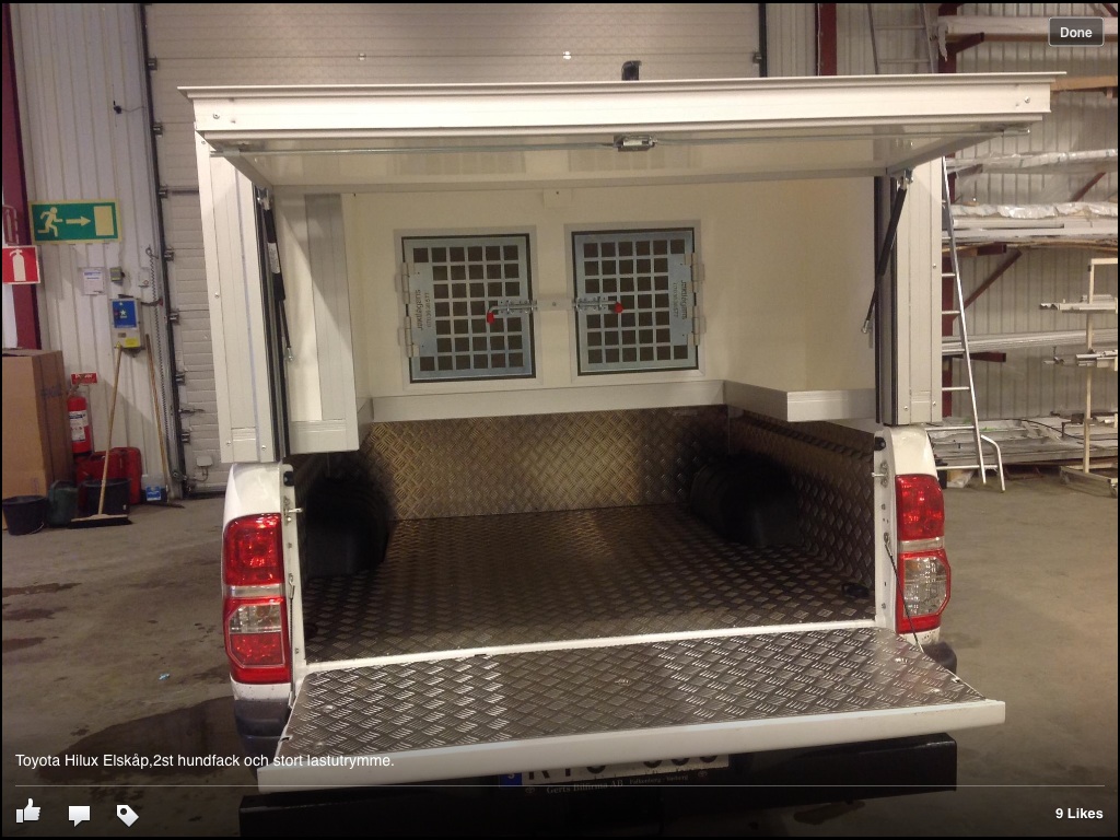 Publicerat Maj 25, 201312 yr Haha inget sådant planerat! Men det var ett exempel på vad som kan vara bra att få plats med ok. jag tyckte ju släde för grisarna var bra! Men det finns ingen smidig lösning så att hundarna kommer upp själv va? Men å andra sidan så blir ju utrymmet som blir kvar lika om burarna är högt eller lågt. Men om man har burarna lågt så bör man kanske ha en skiva som skydd ovanför! Har du kollat om back-kameran verkligen sitter i baklemmen?