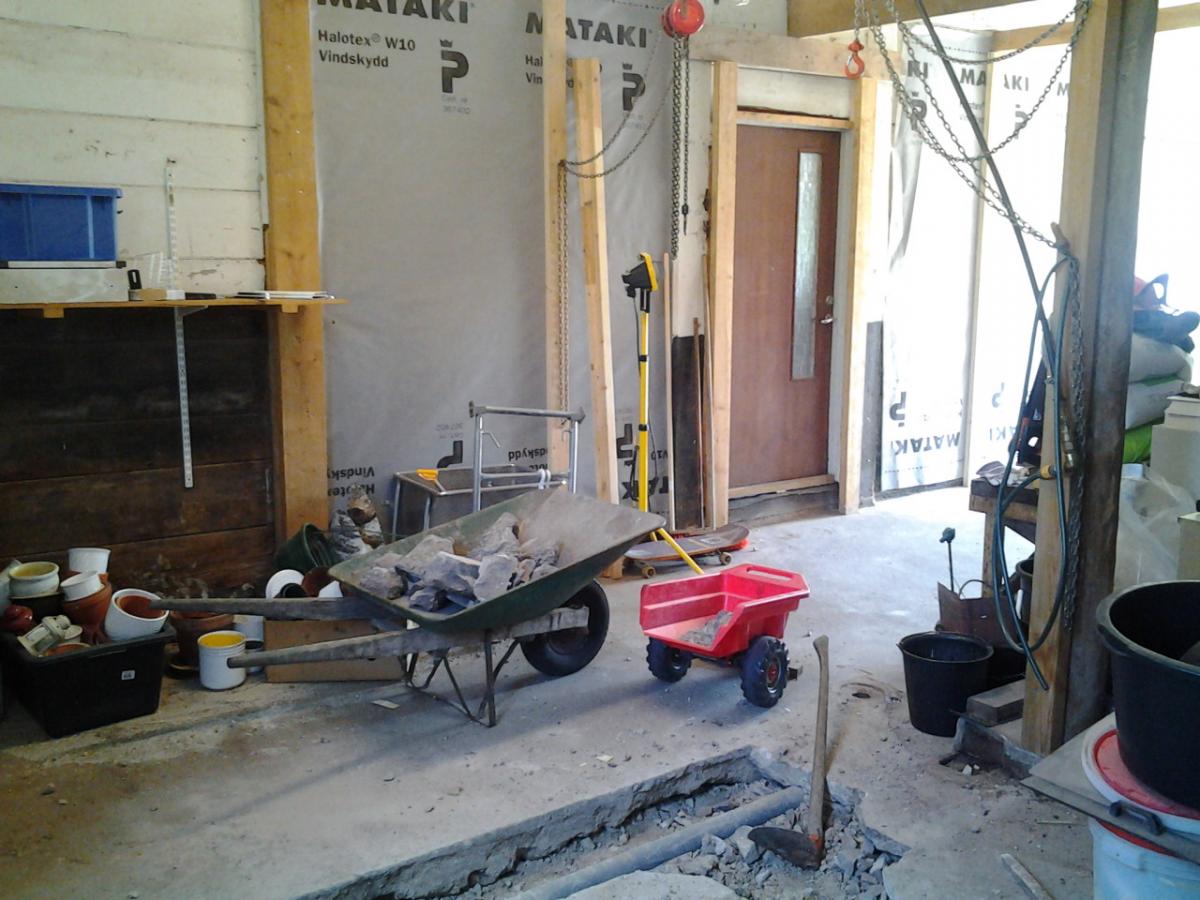 Publicerat Juni 6, 201312 yr Författare Arbetet går sakta framåt. Grävt under sockeln på stallet och dragit in nytt avlopp, nästa steg blir att gjuta igen golvet.