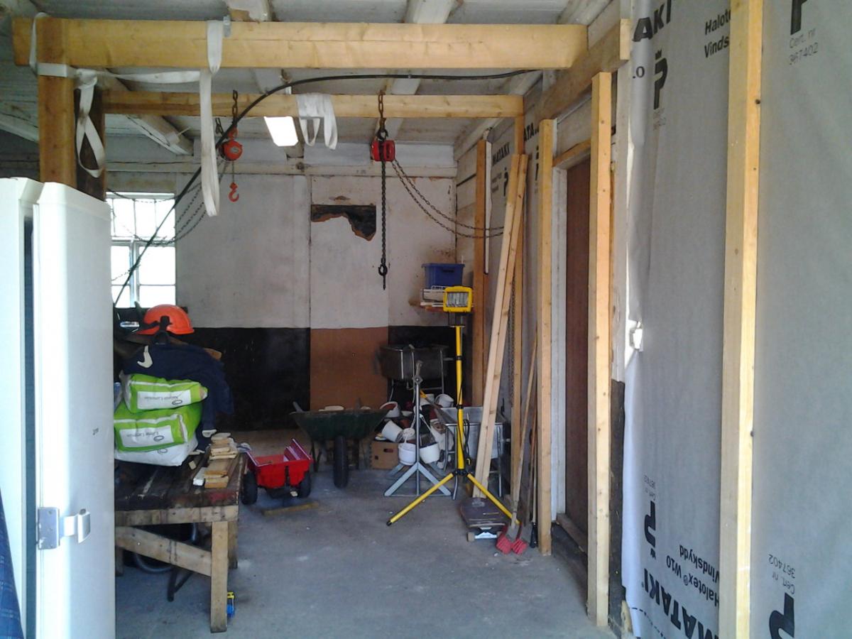 Publicerat Juni 6, 201312 yr Jag säger som flera andra här. Gör ALLT du kan för takhöjden, varje cm är viktig när du inte har mer att gå på från början. Dom nya reglar man ser i taket på bilderna, är det tänkt att fästa ett innertak i? Om det är så, ta merjobbet och fäll in dom mellan dom gamla balkarna. Om jag kommer ihåg det ska jag mäta höjden på min skena imorgon. Även den sitter för lågt för att det ska gå smidigt att dra av skinnet på dovhjortarna. Hittade en bild i datorn på slaktrummet Över mannen på bilden ser man lite av vågen som hänger i den översta skenan som även telfern sitter i. Det hade inte gjort något om den satt ännu högre.