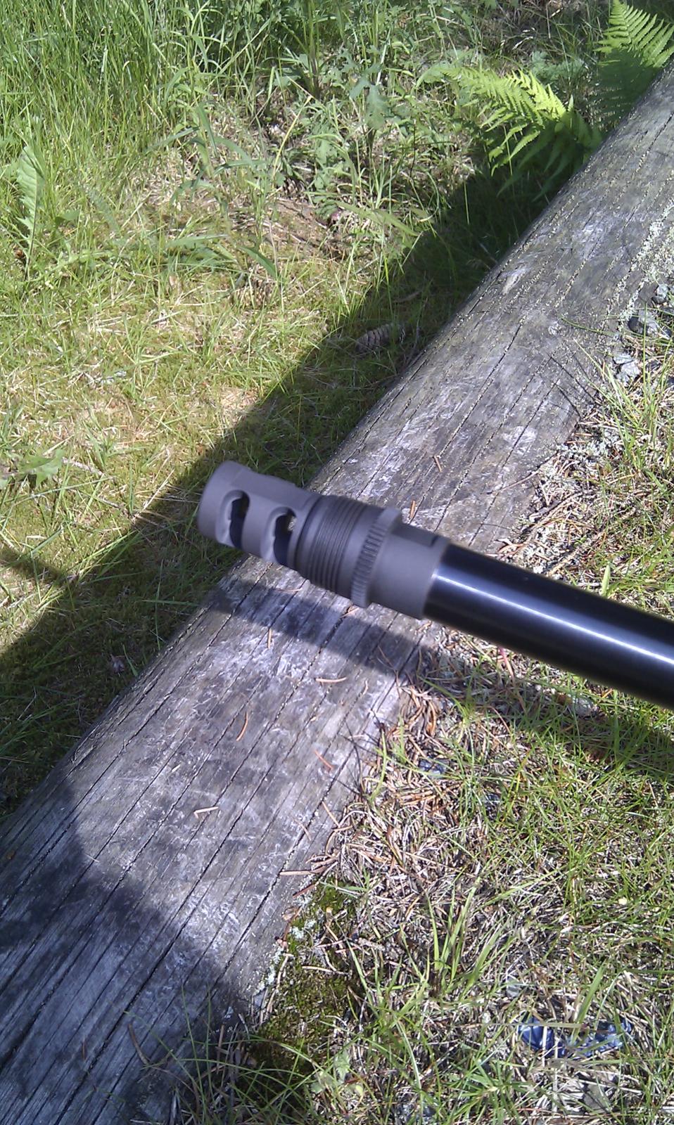 Publicerat Juli 6, 201312 yr Författare Hehe...det går att lära gamla hundar sitta Under inskjutning av nya 308 pipan idag så fick jag möjlighet att prova ASE-utras bore lock system och jag är frälst. Fick provskjuta en Tikka 308 med detta systemet och kunde genast konstatera att den bössan rekylerade mindre än vad min tyngre 308 med dämpare gjorde,fördelen med detta systemet är att man vid behov bara skruvar på en ljuddämpare på bromsen då den även fungerar som ljuddämpargänga-dubbelhallelulja! Så här ser bromsen ut med skyddshylsan på ljuddämpargängan. Skyddshylsan avskruvad och bara att skruva på ljuddämparen,den har vidare en inbyggd låsfunktion som låser den i påskruvat läge och som måste tryckas in för att kunna gängas av. Denna kommer pryda mynningen på min 06AI. /Mike