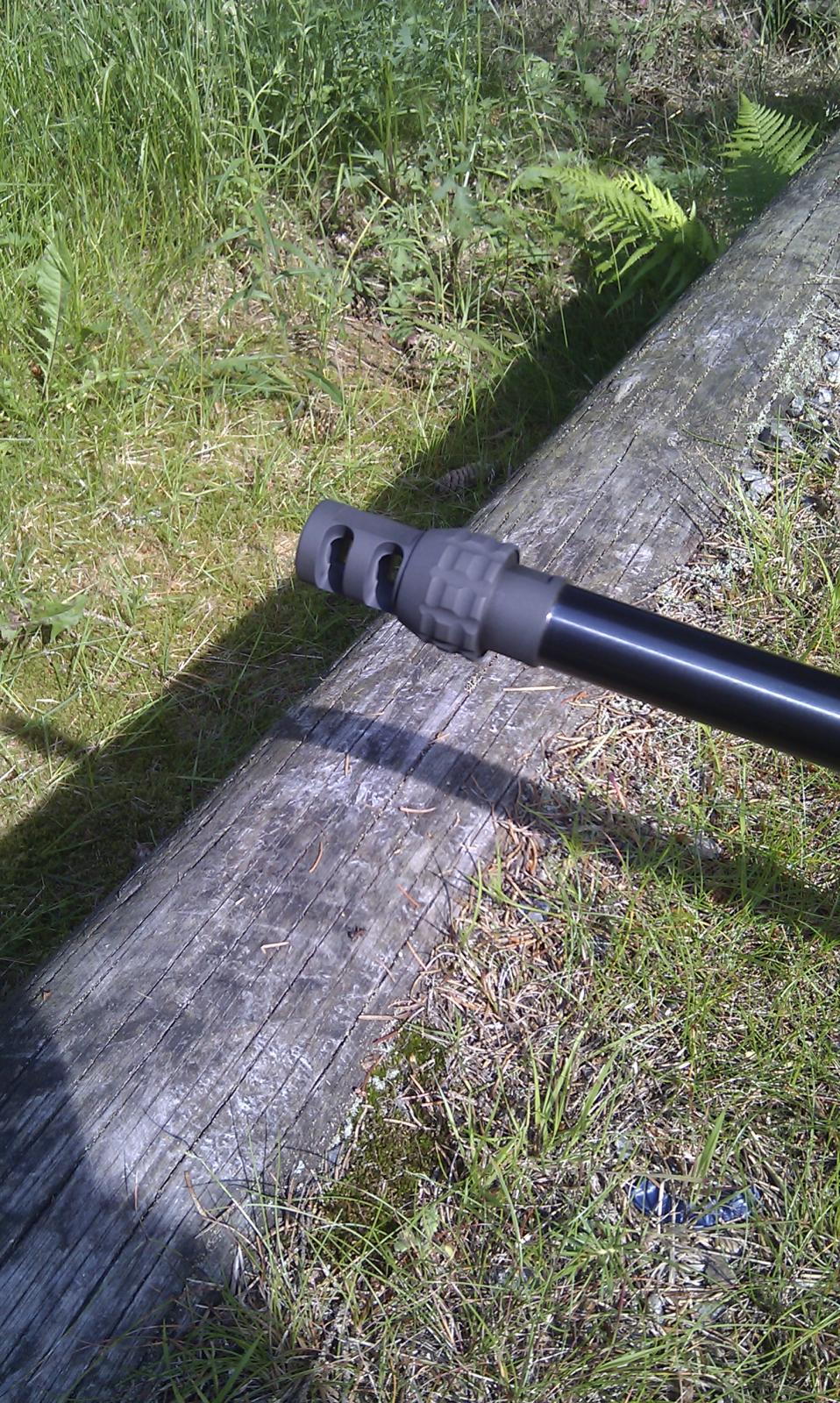 Publicerat Juli 7, 201312 yr Hehe...det går att lära gamla hundar sitta Under inskjutning av nya 308 pipan idag så fick jag möjlighet att prova ASE-utras bore lock system och jag är frälst. Fick provskjuta en Tikka 308 med detta systemet och kunde genast konstatera att den bössan rekylerade mindre än vad min tyngre 308 med dämpare gjorde,fördelen med detta systemet är att man vid behov bara skruvar på en ljuddämpare på bromsen då den även fungerar som ljuddämpargänga-dubbelhallelulja! Så här ser bromsen ut med skyddshylsan på ljuddämpargängan. IMAG0351.jpg Skyddshylsan avskruvad och bara att skruva på ljuddämparen,den har vidare en inbyggd låsfunktion som låser den i påskruvat läge och som måste tryckas in för att kunna gängas av. IMAG0352.jpg Denna kommer pryda mynningen på min 06AI. /Mike Shit, det där såg ut som fina grejer, nu skulle till och med jag kunna tänka mig att köra bromsat Skickat från min GT-S5690 via Tapatalk 2