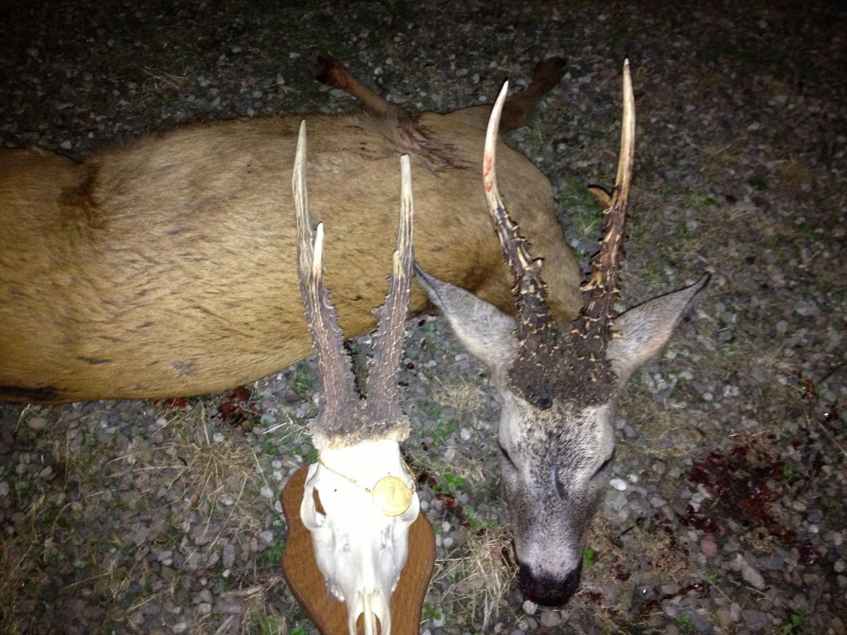 Publicerat Augusti 22, 201312 yr Detta är en populär post. Efter att ha legat 3 dagar o fjärtat i ett sädesfält så kom BOCKEN fram... Den ljusare av de två är guldbocken (140 poäng) jag sköt för några år sen som jämförelse.