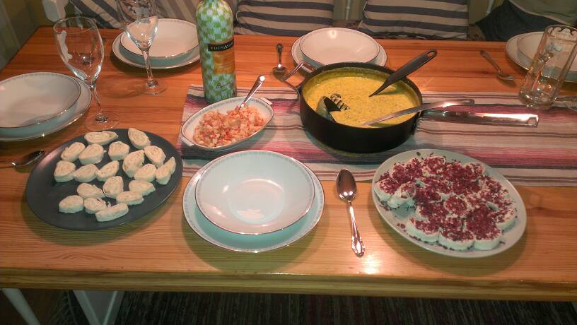Publicerat December 31, 201312 yr Förrätt, avocado med räkor och rom. Varmrätt, tjälknöl av älg med potatisgratäng. Efterrätt äter vi aldrig, blir en wiskypinne istället. Allt serbverat i en flock finnspetsvalpar