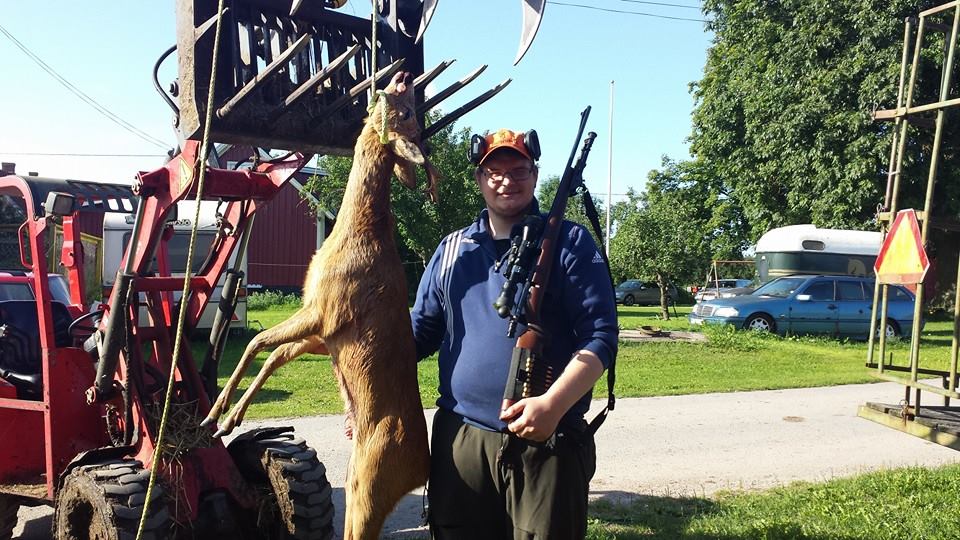 Publicerat Augusti 28, 201411 yr hallå alla glada bockskyttar ursäkta min frånvaro! var inbjuden hos min kompis i vackra kristianopel att pröva lyckan på en premiär bock han sätter givet gästen på general passet vilket jag länge motsatte då jag gärna inte vill bli särbehandlad bara för att jag är gäst men men med löfte om både käftsmäll och kolvning om jag inte höll truten så kravlade jag mig upp i tornet 05:00 klockan 07:30 hade jag fått nog av att sitta still och tänkte smyga mig bort mot ett gärde för att spana av som en god jägare och gäst gjorde jag givetvis patron ur inann jag skulle ner från tornet i perefirin ser jag ett rådjur gå ut snabb koll i kikarn bock! satan bara att smyga in två plugg i åskkäppen och ta stöd och visst gick det bra han kom ut på hundra meter hårkorset bakom bogen och pang! ett stort skutt rätt upp i luften och en rusning på 50 meter så blev han liggandes min 185grains lapua mega gjorde susen mycket nöjd med bocken må gott alla jägare