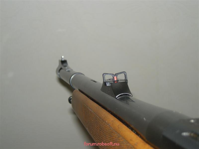 Publicerat Maj 29, 201510 yr Jag kör alt 1, hausken j155 med förhöjt blad och kornfot från recknagel. Har ingen erfarenhet av alt två men tror att ett korn på dämparen är mer exponerat för yttre påverkan. Fördelen är att visirlinjen blir längre men för skott inom 50 meter tror jag det kvittar.