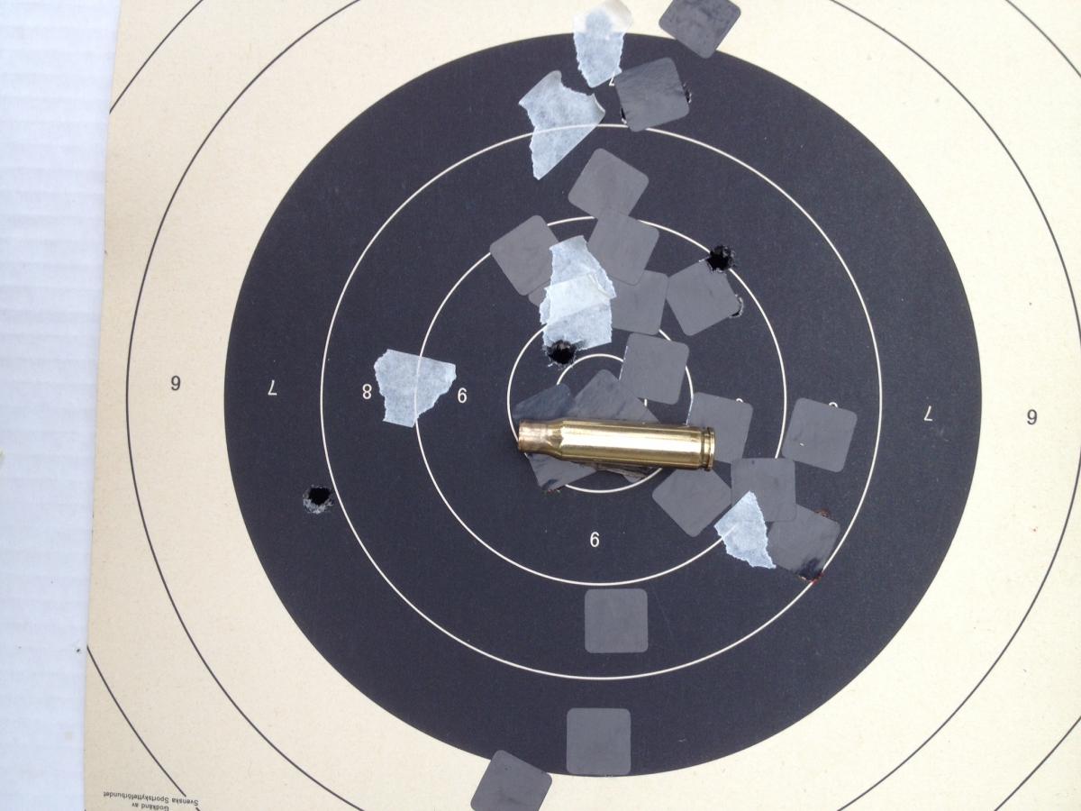 Publicerat Juni 22, 201411 yr Författare Du hade 3 träff på svarta/tavlan, antar att det var ditt mål så well done. Klämmer du man iväg 5bulor inom låt säga 15-20cm på 300 med dina förutsättningar/utrustning så är det bra enligt mig. Inget man jagar toppfågel med, men det var ju inte heller frågeställningen. Var ungefär så jag tänkte. Men sen började jag fundera på vad som är rimligt att uppnå när man övat lite mer. Pratade med vapenhandlarn och han hävdade att man kan räkna med att övningsammunition kan ha en "inbyggd" spridning på ett par cm på 100m. Är det så blir det ju svårt att skjuta hål i hål på 300...