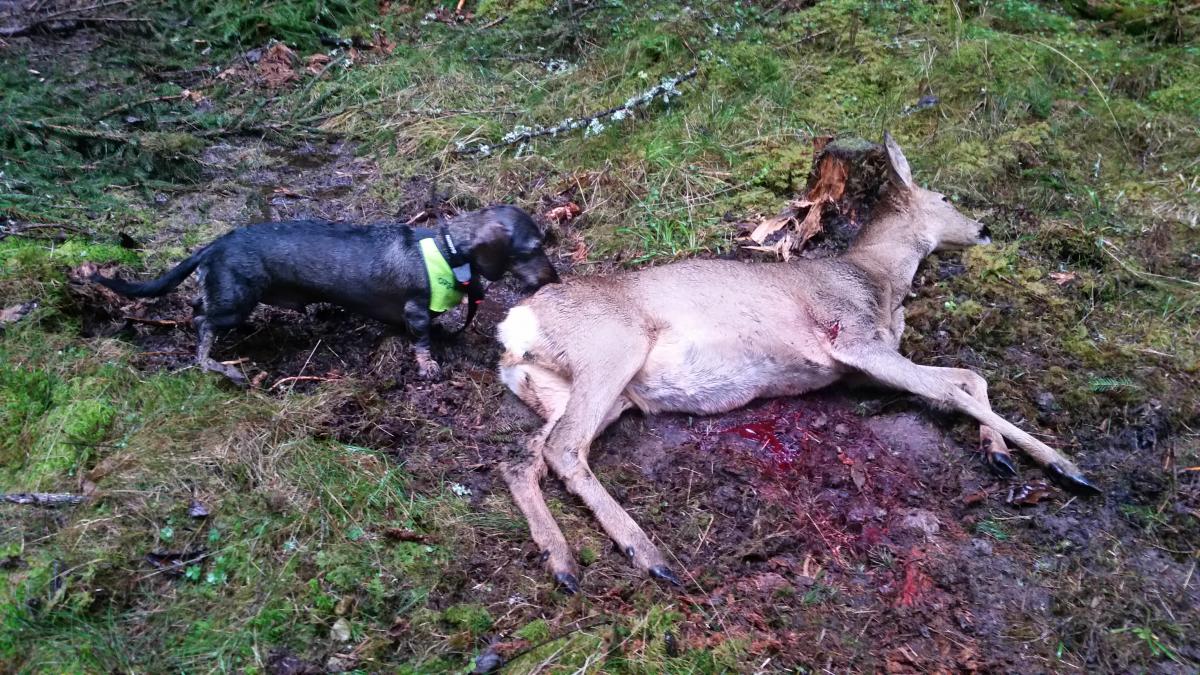 Publicerat December 1, 201411 yr Hade en lyckad helg med taxen. Tre släpp på lördagen vilket resulterade i en bock skjuten i första efter ca 45 minuter. Släppte sedan direkt igen och blev ca 40 minuters drev, sedan sköts ett hondjur. Vi tog en fika och släppte sedan på nytt i en annan del av marken fick gå en bit sedan upptag av ett ensamt rådjur som buktade runt passkyttarna på ca 100 ha under en timma. Valde sedan att koppla hunden då han började bli sliten. Ny jakt på ny mark på söndagen och upptag direkt, snurrade runt passkyttarna i en 15-20 minuter innan det valde att bukta trångt på fel sida gränserna i dryga timmen. Nytt släpp på ett gudrunhygge och upptag, buktade fint i slyet ca 15 minuter, sedan runt en åker där vi stog och lyssnade, trodde aldrig rådjuret skulle komma ut på åkern men det gjorde det. Rakt i knäet på husse som fick fälla en liten spetsbock efter dryga 20 minuter. Fantastiskt rolig jakthelg med min unghund.
