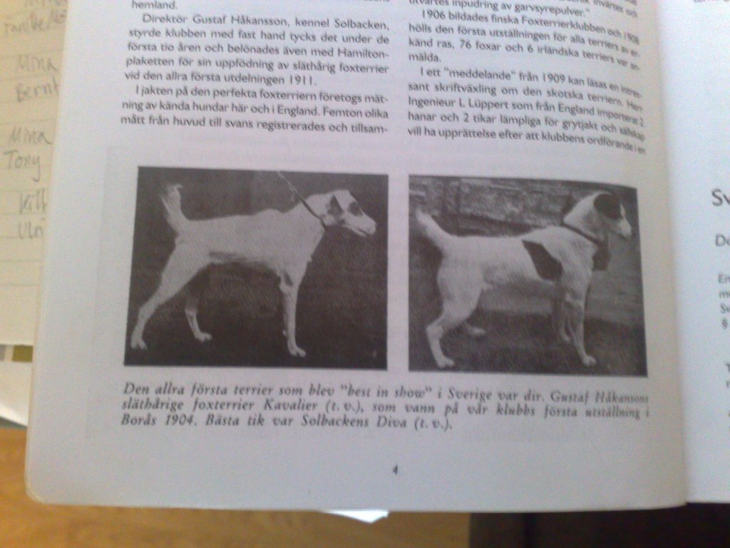 Publicerat November 1, 200817 yr Nej det är tvärs om .... Det är faktiskt så att de i grund och botten är samma ursprung....men en gren av vita grytjagande terriers så kallade foxterriers var först med att abonnera på namnet..... Lite enkelt uttryckt.... En bild på de första foxterriena på en utställning i sverige från terrierklubbens årsbog.....lite parsonlika eller ...grunda i bröstet och betydligt mindre ädla...