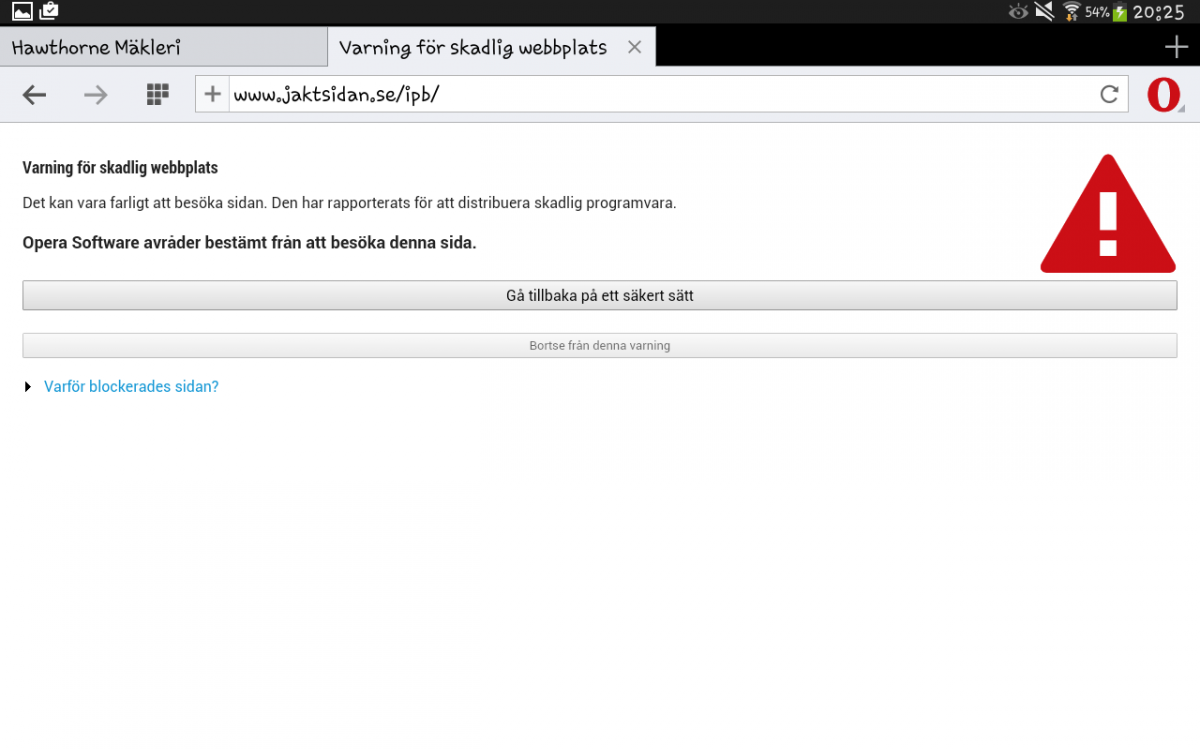 fick en varning om att sidan är osäker!