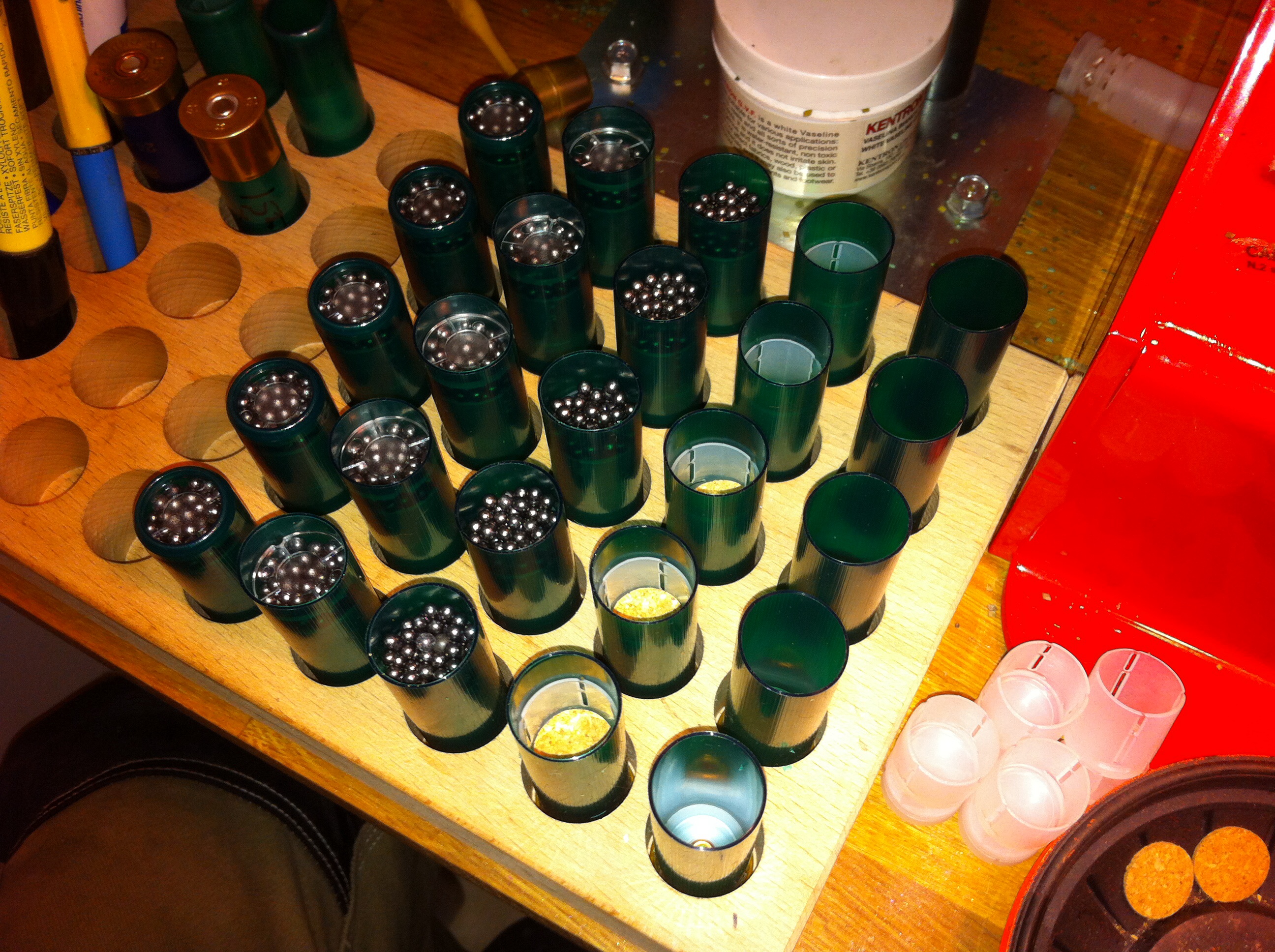 Publicerat September 23, 20169 yr 37 minutes ago Christian N sa: Anvisningarna utåt så skulle den spricka lättare, det behövs ingen fysik examen för det. Laddningen ovan var en bantad 32 grams laddning, man kan ta precis vad som helst som är volymiöst motsvarande 1 gram bly, men som är lättare än så och lägga i botten av koppen, popcorn har föreslagits, majskrokar i lagom bit osv, allt det fungerar. Men det blir/är bara snyggt om man gör det med en korkförladdning. /C och "bantad 32 grams laddning" innebär i detta fall att det är 31 gram hagel? /Tony