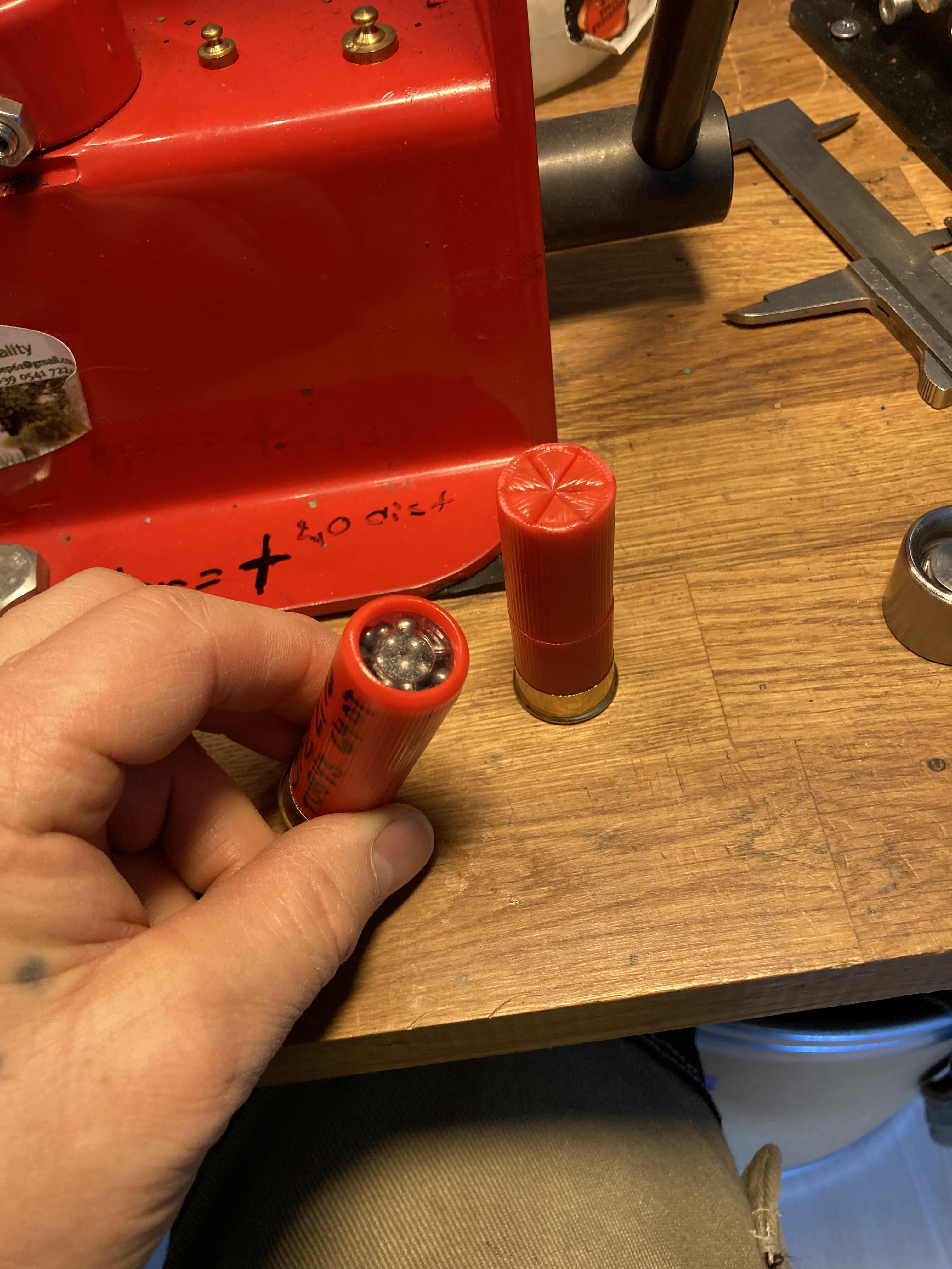 Publicerat Mars 13, 20224 yr Författare Detta är en populär post. Efter lite surr med italienarna så inser jag att det finns ett sug efter lite tyngre grejer så jag ska återuppta mina test med 34gram i 12/70 . Jag har ett Dansk recept som är tryck provat i pressure tracer II utrustning och ska leverera 498m/s under 800bar dock är det med stjärnstukat vilket är en omöjlighet att få ihop. Däremot rullstukat till 64mm med disk går utmärkt, rullstukat lugnar även ner trycket och troligen farten men vi pratar 34gram och hög fart har sitt pris.