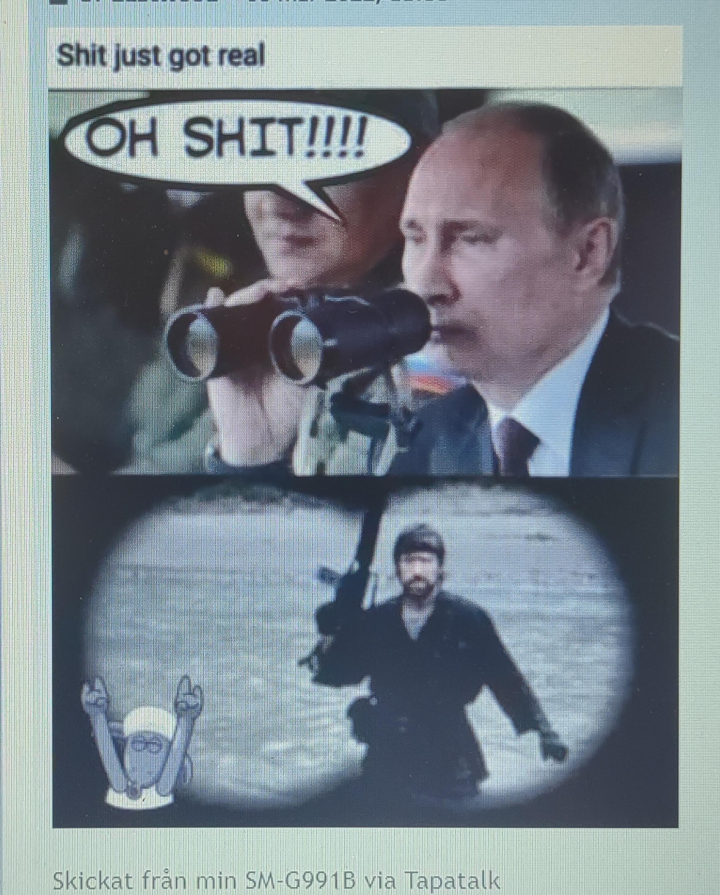 Publicerat Mars 9, 20224 yr 1 hour ago fubar sa: Skillnaden idag och det med stort SKILLNAD stavas kärnvapen. Utan dom hade med största sannolikhet 3:e varit igång nu, men kan ju på sätt och vis diskuteras om så inte redan är fallet om än inte i direkta sammandrabbningar mellan Nato och Ryssland eller ja det är väll också en hår fin balansgång på knivseggen, men inte direkta drabbningar soldat Nato soldat Ryssland än och ve och fasa om så inträffar. Men alliansfrihet my ass, och vore en skam om vi beter oss som under andra världskriget, är vi måna om vår frihet och demokrati ska vi förbanne mig stå på den sida som värnar fred och är en åtminstone på papperet "Försvars allians" Vi ska strida och stå upp för våra ideal, ideologi, fred och demokrati inte låta andra ta våra strider! Så är det helt klart, utan ryska kärnvapen hade det säkert redan varit en flygförbudszon över Ukraina och med tanke på hur bra den ryska hårdvaran fungerar så är väl frågan om det överhuvudtaget hade blivit några västliga förluster, särskilt inte om man nöjde sig med att bara använda F-22or och F-35or.
