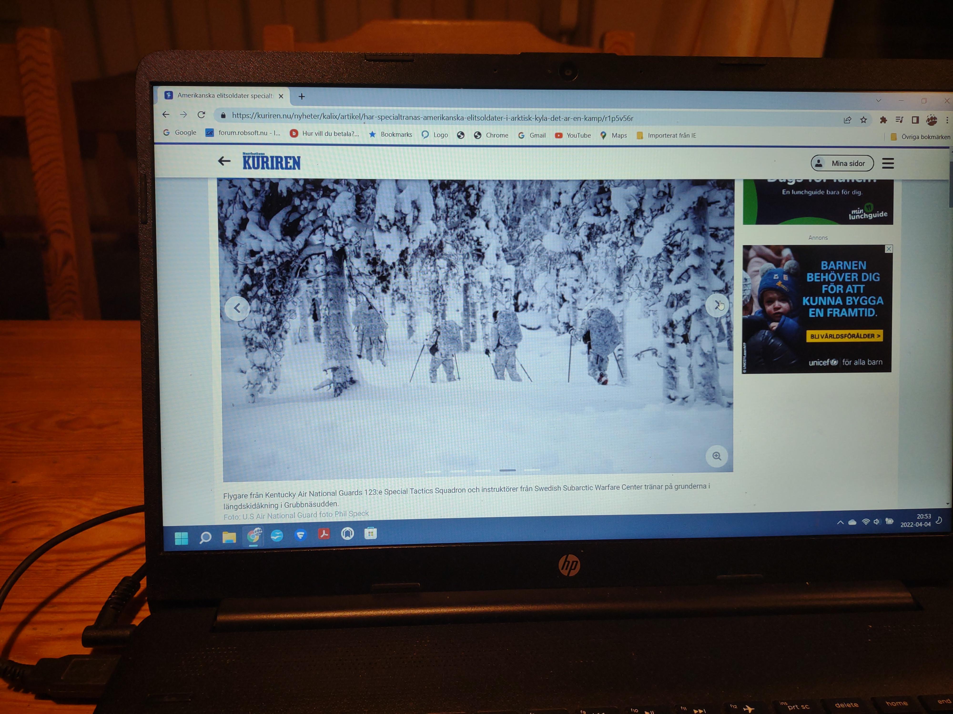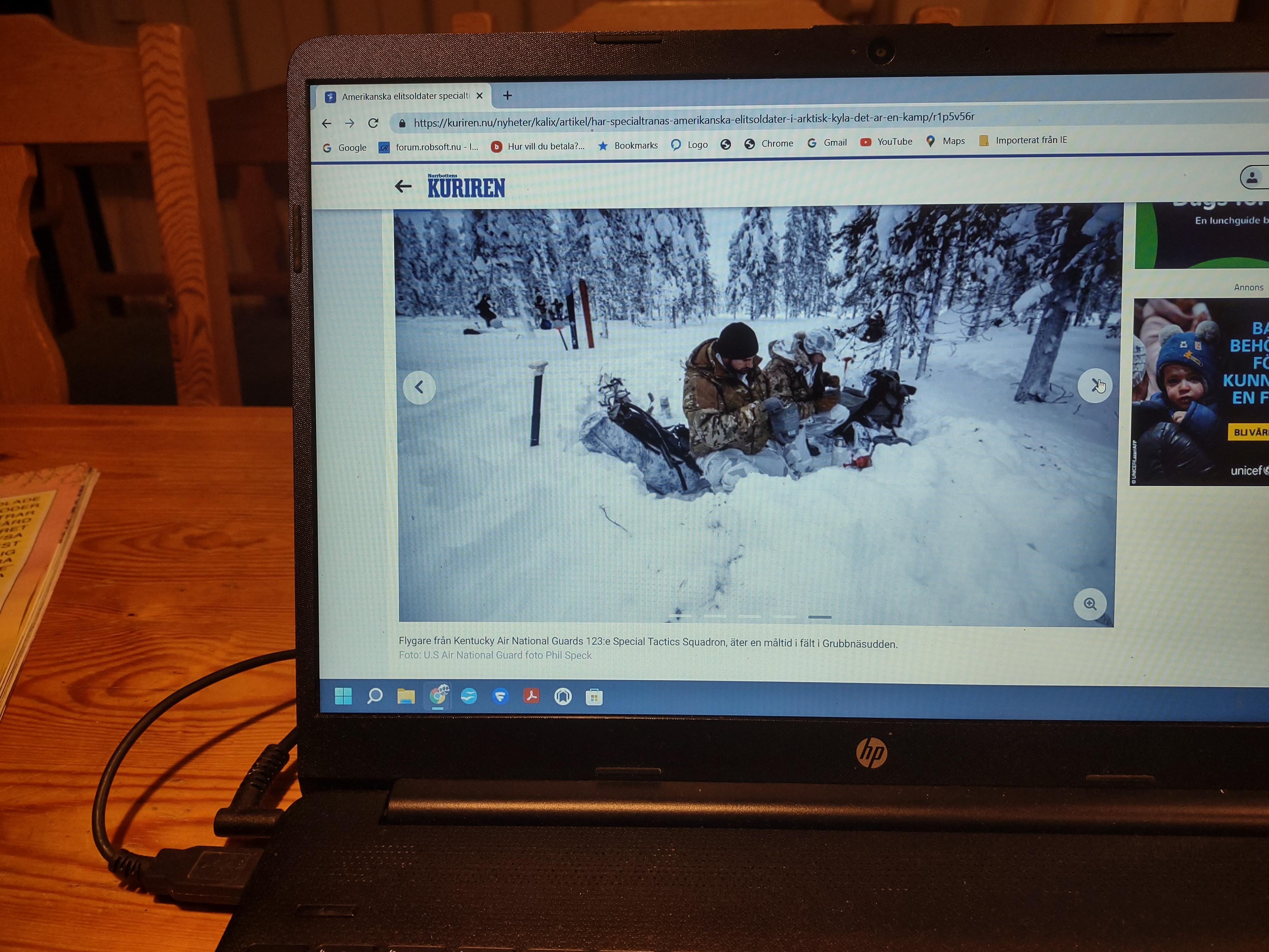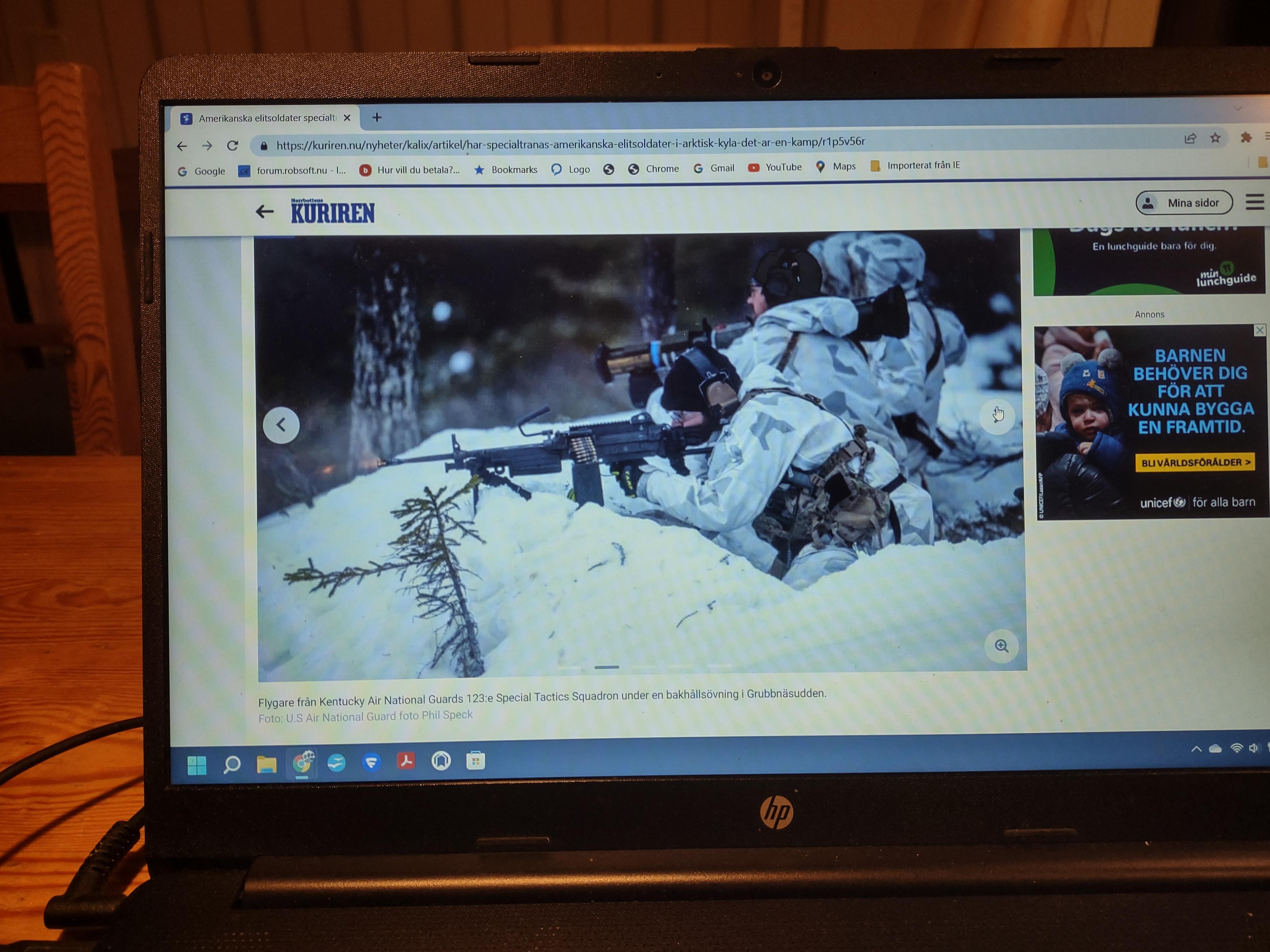 Publicerat April 4, 20224 yr Från dagens Norrbotten-Kurirens webupplaga. Amerikanska elitsoldater specialtränas – utanför Kalix Femton amerikanska elitsoldater har tränats i Grubbnäsudden – och de hyllar Försvarsmaktens svenska vinterkurs. Femton flygare från Kentucky Air National Guard hade nyligen en två veckors kurs vid Lombens skjutfält i Grubbnäsudden. Senior Master Sergeant Sascha Kvale är "combat controller", utbildad för att kalla in flygunderstöd till specialförbanden. Han beskriver i ett pressmeddelande utbildningen som "något av den mest utmanande och välgörande träning jag har gjort på decennier, om jag ska vara helt ärlig". "Ingenting fungerar här som det gör i centralcommandot, Afghanistan och Irak. Allt är mycket mer komplicerat och sofistikerad utrustning fungerar ofta inte. Ibland dör våra GPS-enheters batterier inom en timme. Alla våra batterier blir kalla och blöta, så när du sätter i ett nytt batteri fungerar det fortfarande inte. Dessutom, om du inte underhåller vapensystemen på rätt sätt, kan de frysa helt" säger Sascha Kvale som konstaterar "ibland är det bara de gamla, enkla sakerna som fungerar bäst här". "Bara att flytta från punkt A till punkt B i den här miljön är så mycket mer komplicerat än något vi har gjort tidigare. Här genomförde vi bakhåll med raketer och maskingevär, saker vi har gjort i flera år, men bara på grund av miljön blev det mycket mer komplicerat" säger Sascha Kvale. Svenska arméns sergeant första klass, tillika huvudinstruktör Frederick Ragnarsson, säger att förbandet kom till Sverige för att svenskarna har en av världens bästa utbildningar för arktiska miljöer. "Även om kursen kan vara grundläggande är det verkligen inte lätt. Det grundläggande är vad du behöver för att överleva här ute. Till att börja med måste du åka skidor för att kunna transportera dig. Du måste vara ganska disciplinerad för att behålla din fysiska kondition. Att bara behålla dina dagliga uppgifter är en kamp här ute" säger Frederick Ragnarsson i pressmeddelandet. Gränsjägarbataljonen har inte haft någon roll i denna övning som Försvarsmaktens vinterenhet ansvarat för, men de kommer att ha det så småningom. Greta Sköld är informationsbefäl vid Gränsjägarbataljonen. – Vi ska samöva med specialistelitsoldater från USA vecka 22. Det har blivit mer och mer av samövande. Det är bra att öva tillsammans, säger Greta Sköld. Nils-Göran Strömbäck, bataljonschef Gränsjägarbataljonen, säger också att de ser fram emot samövning. – Jag förstår att förhållandena här kan uppfattas som tuffa och lärorika, den här miljön kan vara krävande, säger Nils-Göran Strömbäck. Lotta Nilsson Detta pågår i norra delen av Kalix kommun. Inte långt från kommungräsen mot Överkalix. Har inte jänkarna lika tufft klimat uppe i Alaska? Detta har inget med om ryssen kommer. Jag tänkte att det kunde vara intressant för er andra att få veta vad som händer här uppe i norr.