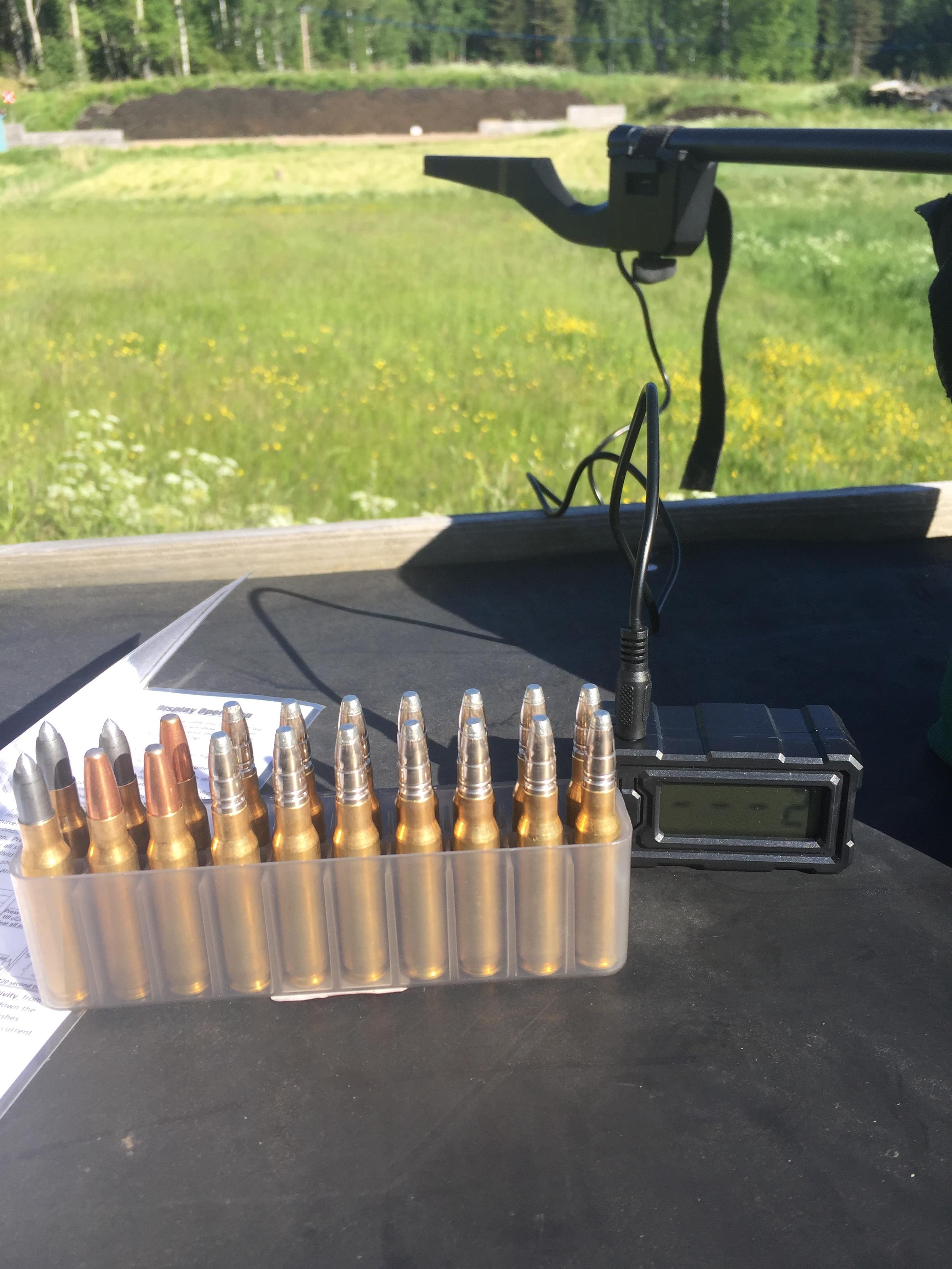 Publicerat Juni 8, 20169 yr Författare Har nu äntligen fått tid över för lite skytte... Magnetospeed Sporter fungerade över förväntan, riktigt kul. Fast givetvis infann sig Mr Murphy. Spännbandet runt pipan gav upp omgående. Någon icke-sykunnig hade trocklat ett par stygn som släppte vid första uppspänningen. Det blev en MacGyver reparation med häftpistolen sedan funkade det förutom vid ett skott då min lagning släppte så det blev mätfel så antalet häftor fick fördubblas. Roligast var att de fyra jaktladdningarna som är tänkta till hösten i 308w samsköt bra både med varann och med den hemladdade pappälgspatronen och Lapua Trainer (kör samma kula 123gr FMJ). Se bilden, det är fyra olika jaktladdningar, TUG Nature147, TAG 150, Mega 185 och RWS Evolution 185, med c-c på 18mm. Med Mega underst...