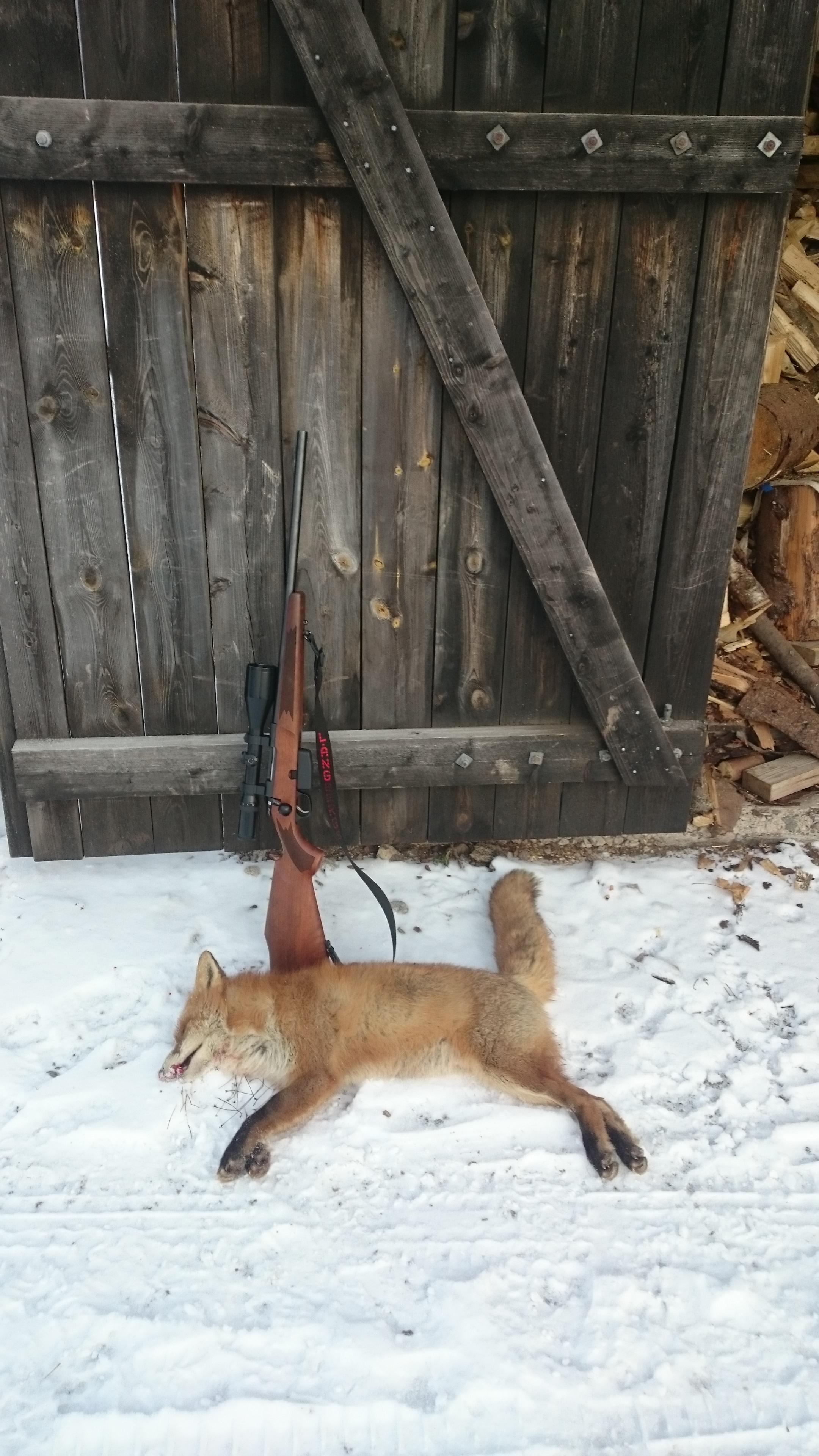 Publicerat Januari 6, 20179 yr Detta är en populär post. Såg två rävar ute på en åker mitt på dan igår. Åkte dit nu vid 10 tiden och tänkte locka, påväg dit ser jag att en räv redan är ute på åkern. Smyger ut till passet och då är räven borta, men jag hinner inte mer än sätta mig innan det kommer en emot mig på 150m. Men den satte full fart över åkern och försvann. Efter 10 sekunder kommer räv nr2 ut på andra sidan åkern men den hinner jag skjuta. Verkar som löpet är igång här, vad skulle annars två rävar göra mitt ute på en åker mitt på dan? Plus att den här luktade piss som f#n. Fast det är ju en månad för tidigt.. 150m, 222rem, 50gr v-max.