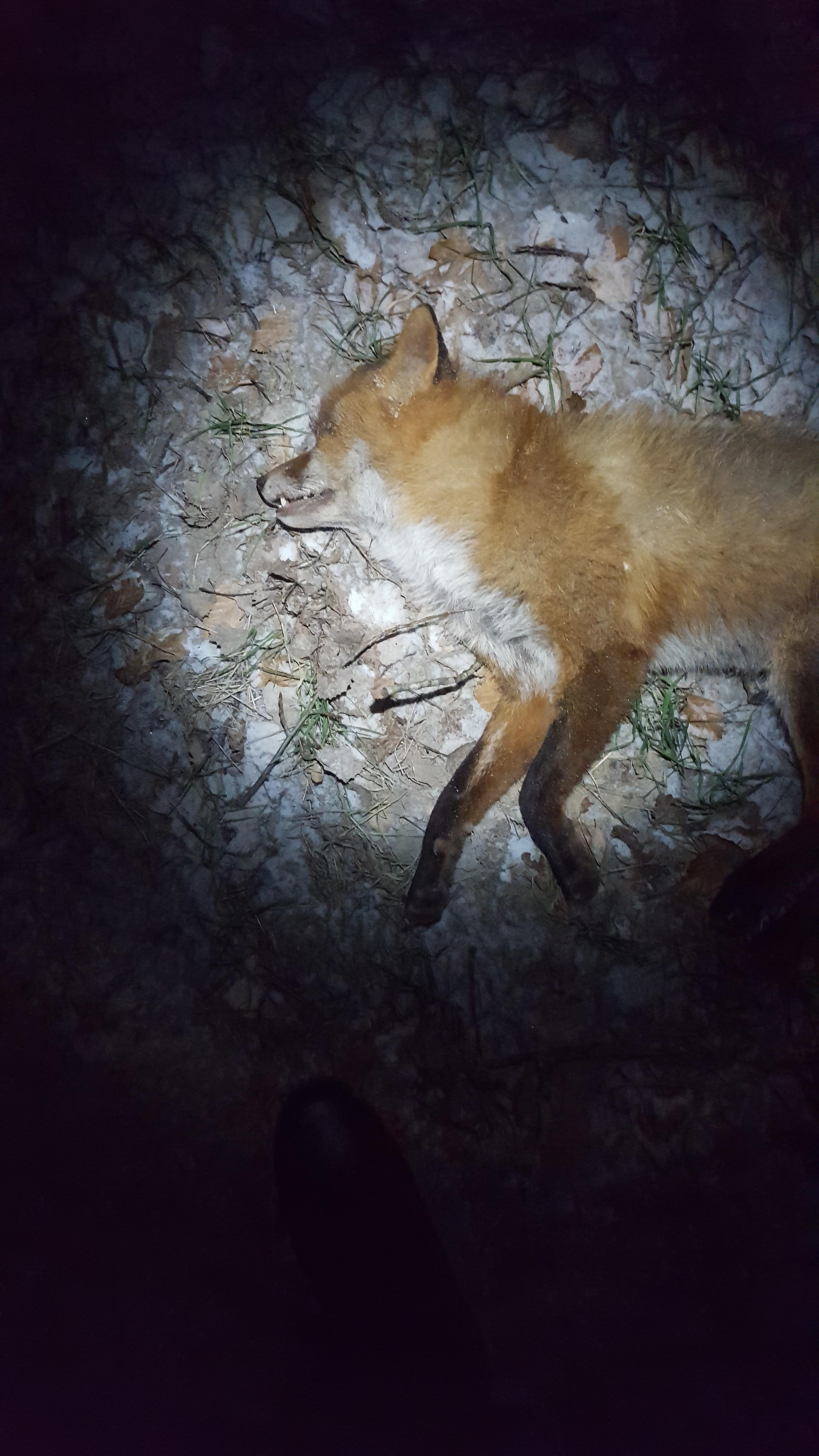 Publicerat Februari 9, 20179 yr Detta är en populär post. Satte mig 2000.. hörde räv 2030 på 500m håll.. vid 2130 vrålade räven 100m ifrån tornet.. 2200 var den på andra sidan åkern och skrek som en gris på 350m.. 2300 blev det knäpptyst... 2330 tyckte jag mig se en mörk fläck i svackan ute på åkern.. kollade i kikaren.. en liten suddig räv.. såg bara ryggen men jag sköt till slut. Räven var kvar.. Jag tyckte att den verkade röra sig så jag tog mig ner och greppa en regel.. Sprang bort och visst levde den! Jag fick klubbat den men jag borde nog haft ett järnrör.. räven var stor och vägde säkert 10kg!