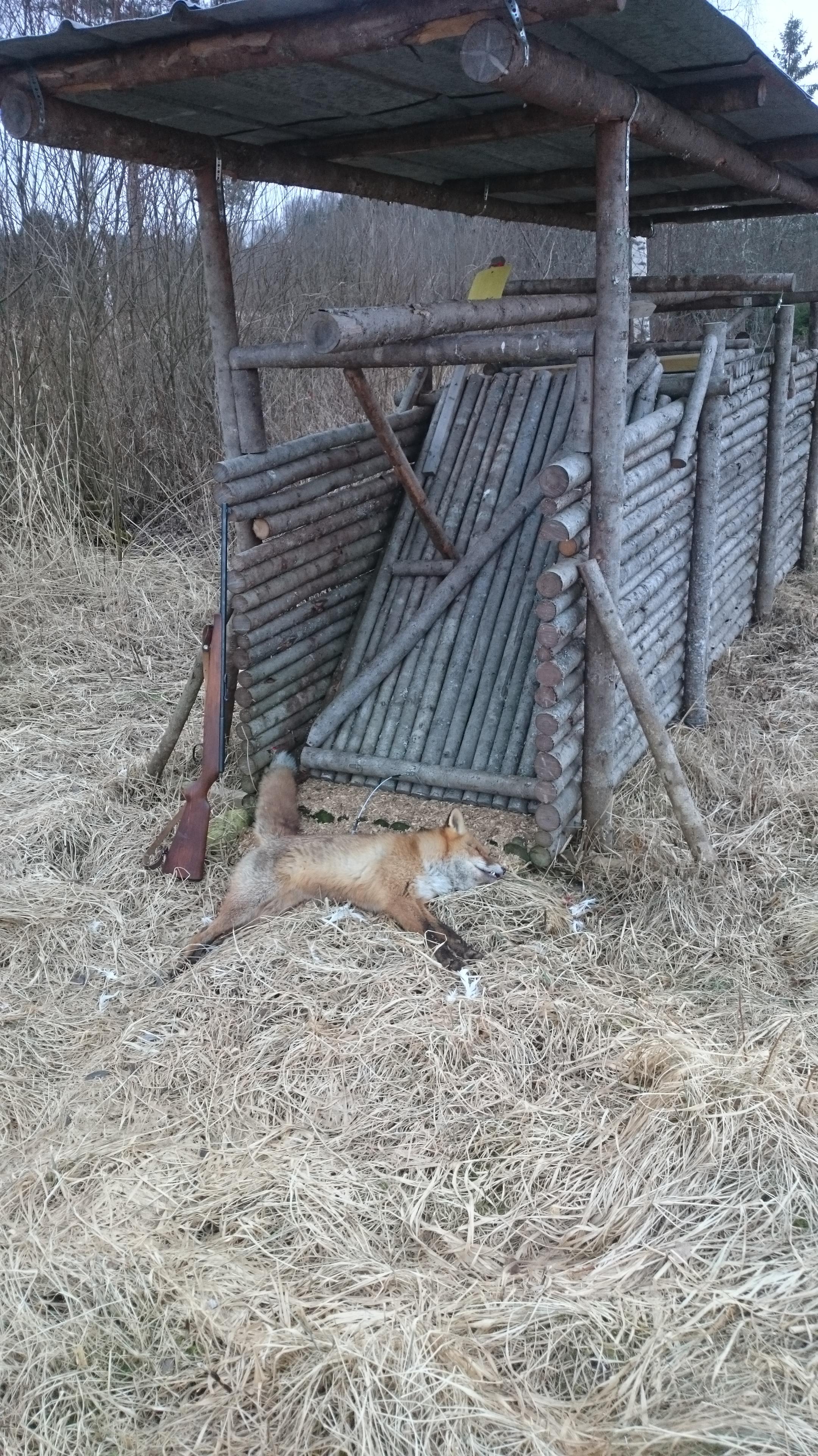 Publicerat Mars 7, 20179 yr Detta är en populär post. Orkade inte åka till skogsåteln så jag åkte till bondgården istället.. var på plats 2000.. hörde 2 olika rävar skälla några hundra meter bort. Från grannhuset hördes röster..2130 hördes en hund skälla.. 2135 rörde sig något på åteln.. en nervös liten rackare.. fick in den i kikaren och visst var det en räv...PANG!! Jag satt kvar en halvtimme till.. vid kontroll så visade sig räven vara en skabbis.. jag gick till bonden och berättade..han vill ju helst ha rävar kvar..men jag har försökt tala om hur skabben sprids när det blir för mycket räv..nu fick han se det själv. Räven stoppades i dubbla sopsäckar och nu får sopförbränningen ta hand om den.