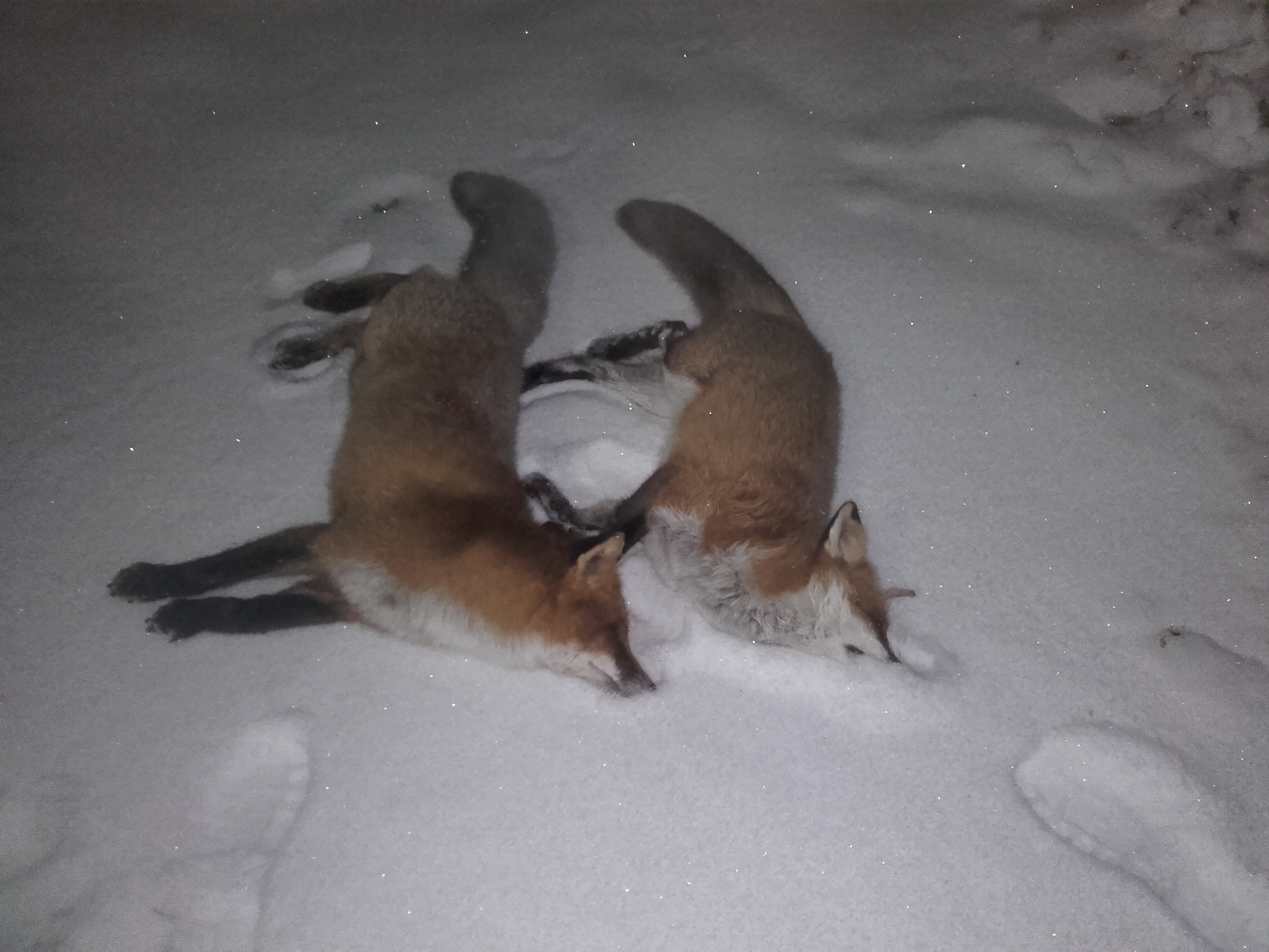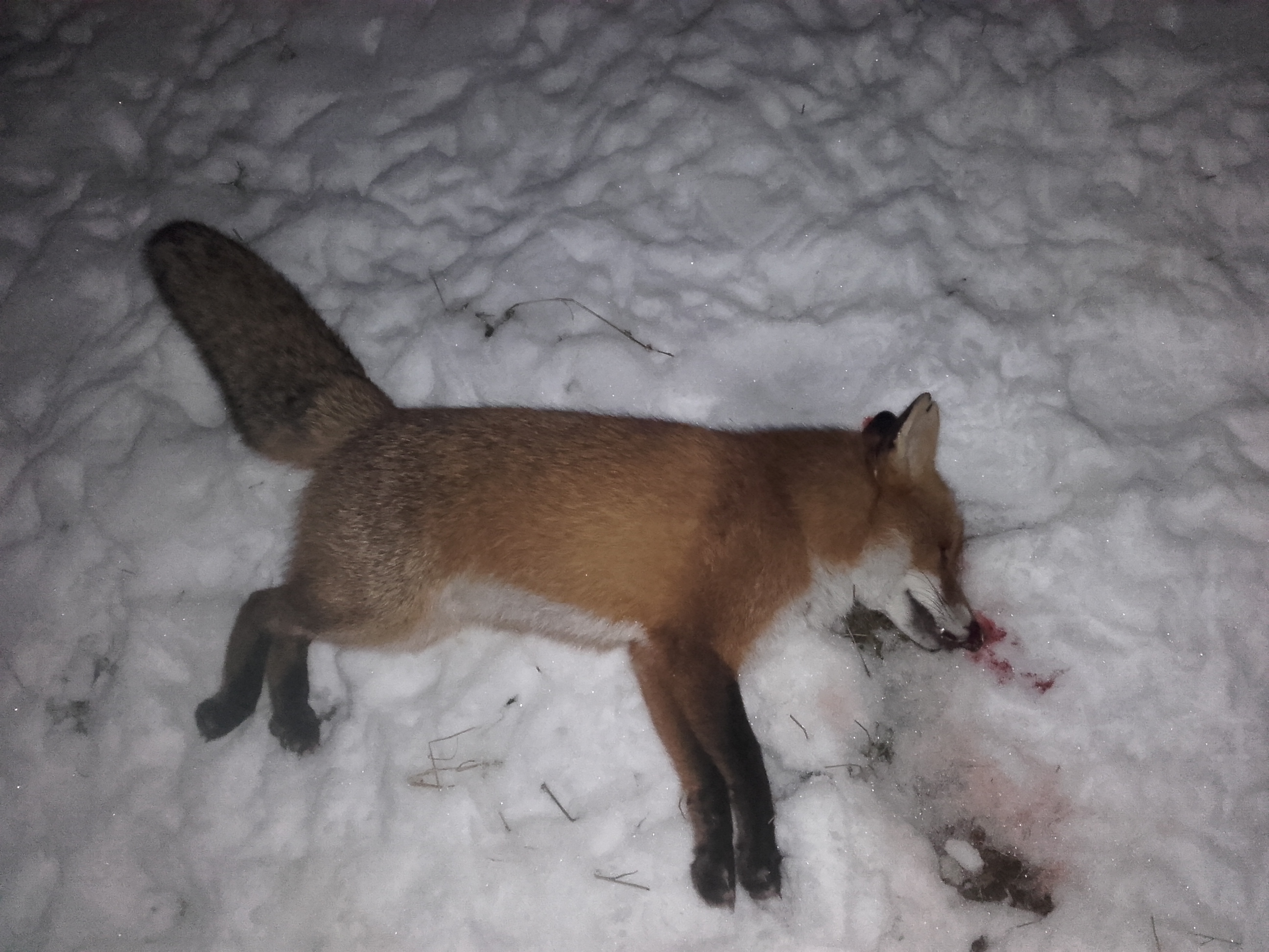 Publicerat November 13, 20169 yr Detta är en populär post. Fick ingen klarhet i vad som lät så hemskt men händer det igen så gjuter jag silverkulor och hänger ett knippe vitlök runt halsen vid nästa fullmåne. Måste ha varit en uggla eller nånting för de enda spår som fanns var gamla rävspår. Men då jag lika stannat så passade jag på att locka. Fick en riktigt stor hanräv och nästföljande pass gav en mindre tik. Hon hade så bråttom att jag fick skjuts henne i språnget och hon landade stendöd på väg rakt i famnen.