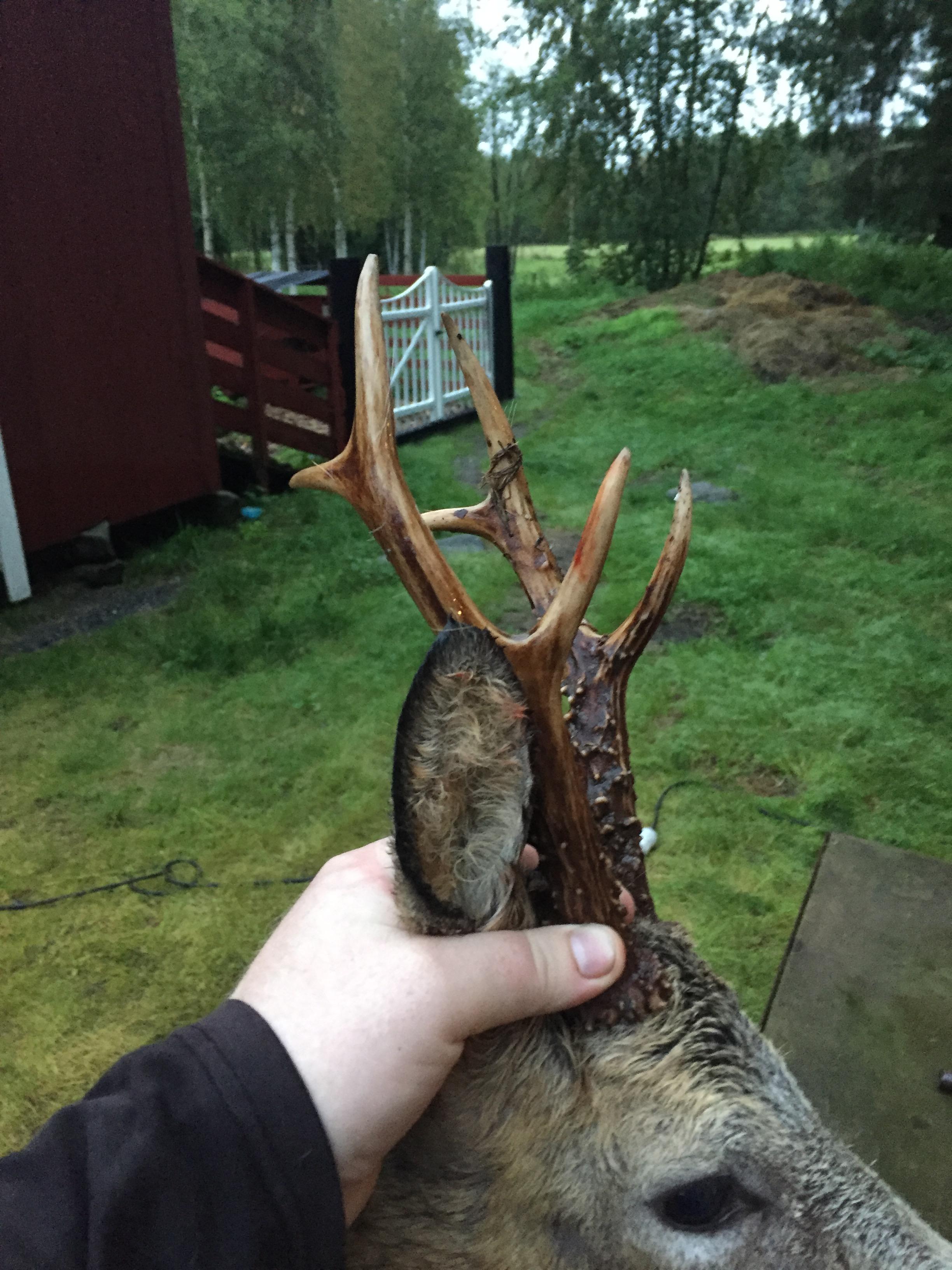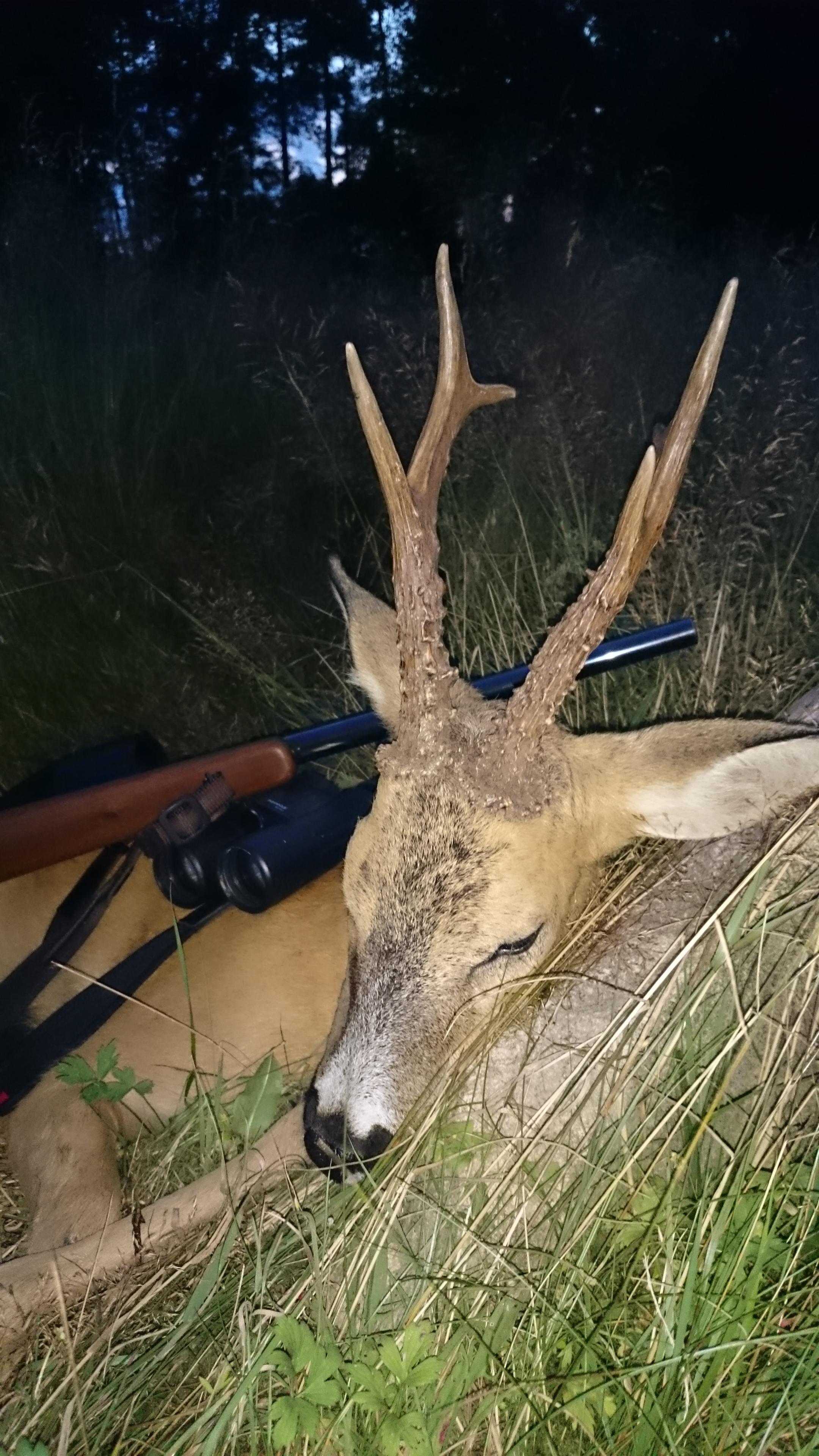 Publicerat Augusti 22, 20169 yr Detta är en populär post. Den här herrn landade i Lingonriset ikväll. Lite äkta purschjakt i sommarvärmen så svetten lackade och flugorna följde mig som om jag vore något som kossan lagt, ändå trivdes jag rätt bra. Efter skottet så släpade jag bocken goda 700m delvis över ett hygge, på skogsvägen som följde så såg det ut som ett litet urgrävt gryt som visade sig vara ett jordgetingbo så de närmsta 100m gick fortare än planerat. Det var en trevlig kväll helt enkelt