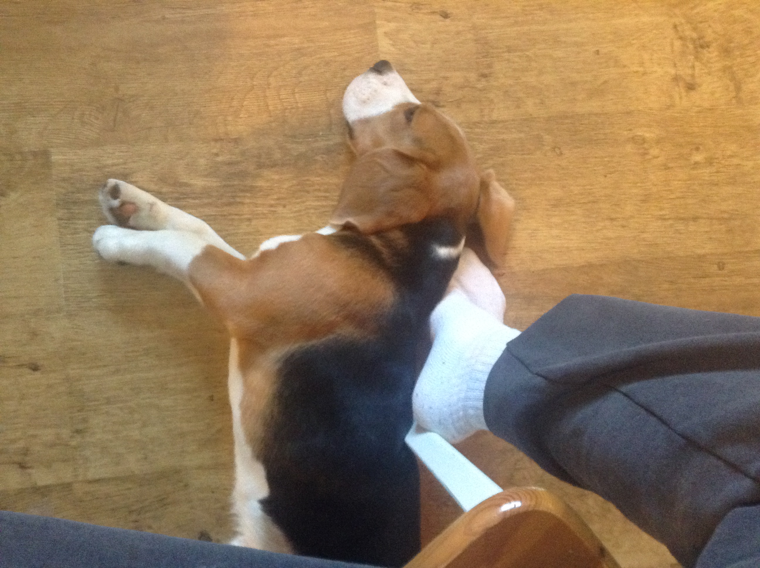 En valp fattar inte att disponera krafterna, utan jagar på tills den är tvärslut!!