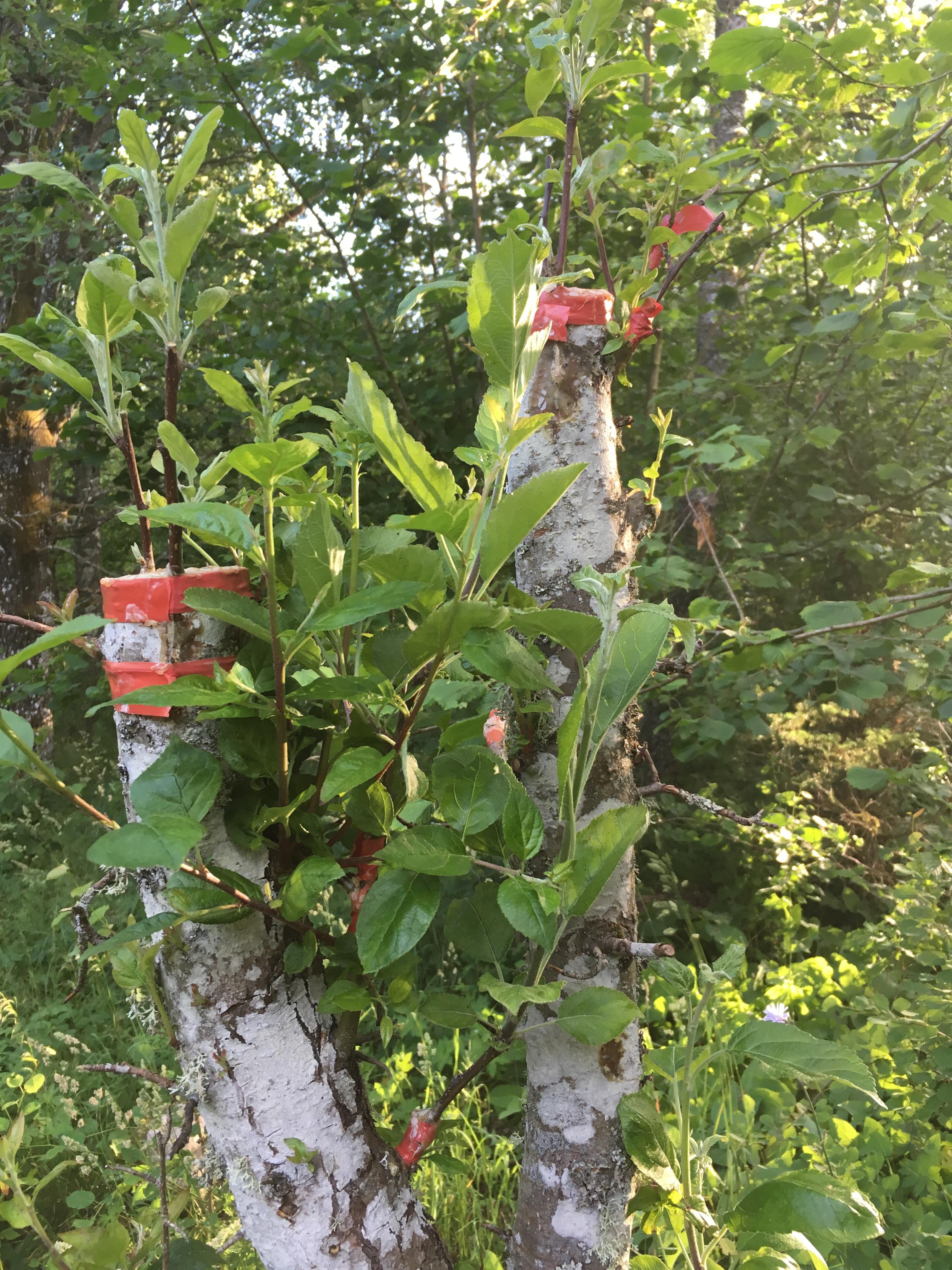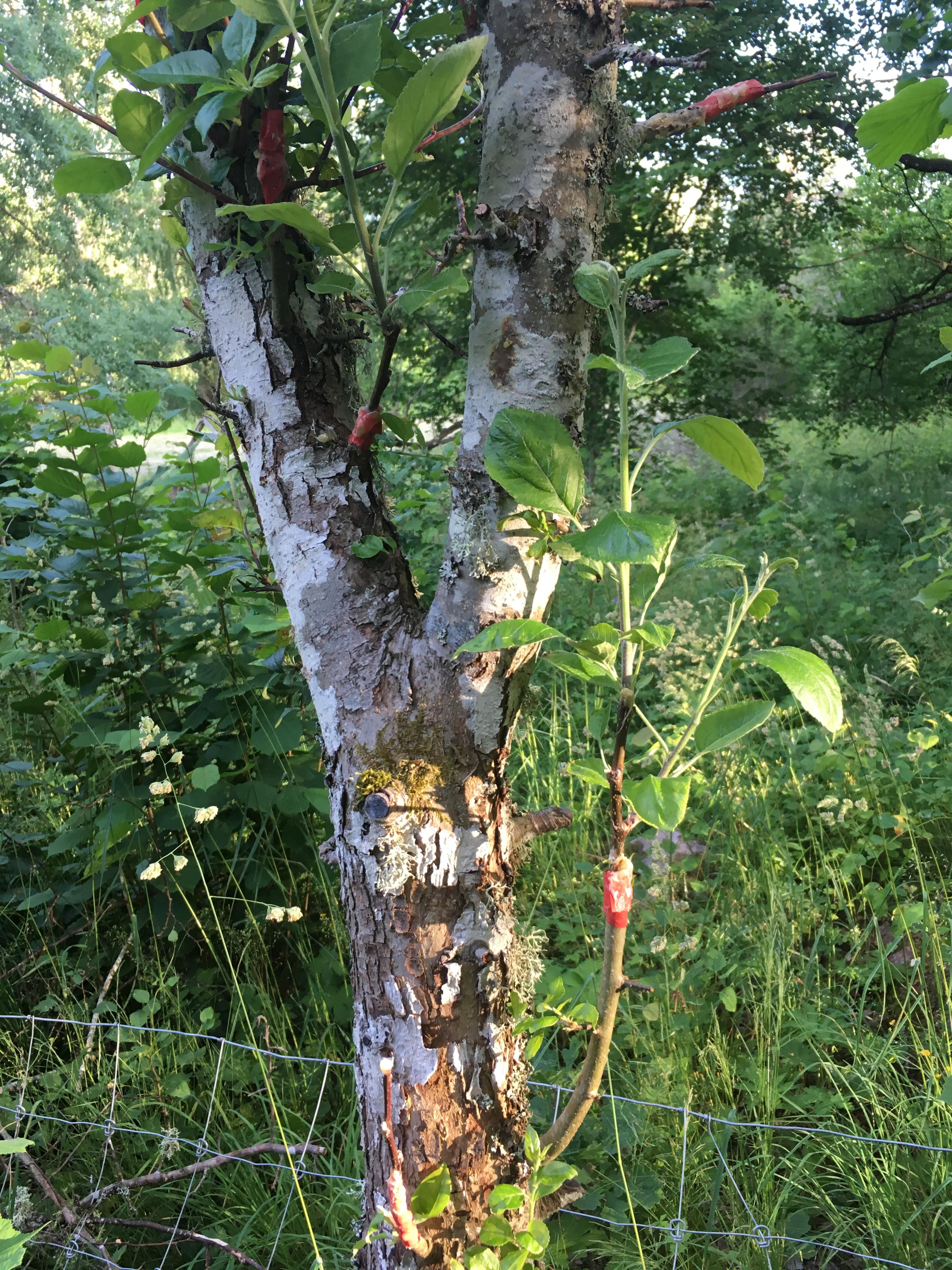 Publicerat Juli 8, 20196 yr En liten vildapel med en Astrakanymp. En liten bit därifrån, en ”bekämpad” rönn som delat sig vid avsågnongen, och båda nya grenarna har fått varsin Aromaymp. Har stora förhoppningar, men inte lika stort hopp.... p.