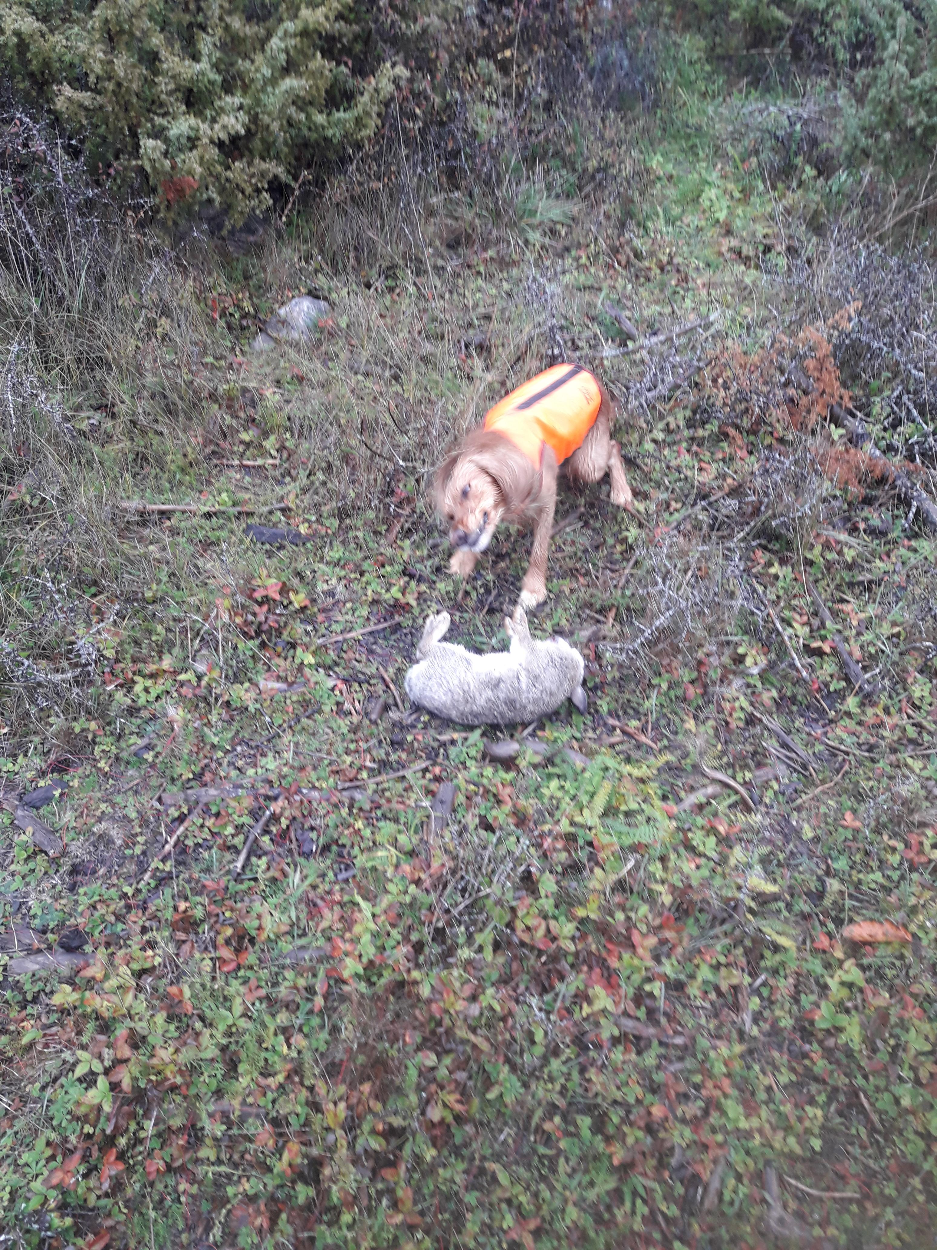 Kul o se att det jagas på för fullt...men samtidigt väldigt frustrerande med tanke på vår situation. Det har väl gått sådär för Sören efter operation...blivit ytterligare 2 besök hos vet med förlängd penicillinkur som resultat. Det vill inte riktigt läka bra och såret har gått upp ett par gånger med blödning som följd trots att vi varit extremt försiktiga och har tratten på 24/7. Är lite geggigt nu, men vet hoppas det ska lösa sig utan att behöva operera igen. Skulle egentligen tagit stygnen på fredag, men det är uppskjutet till måndag. Sören "gillar" läget och sover mest hela dagarna, han verkar bli lite loj av smärtstillande som han fortfarande äter. Inte helt okomplicerat det här med svansar trots operation, håller tummarna för att det vänder snart... Längtar tills att vi iallafall kan ta ordentliga skogspromenader, men jakt känns ganska avlägset just nu. Riktigt segt att vara passkytt när man helst av allt vill gå i skogen...