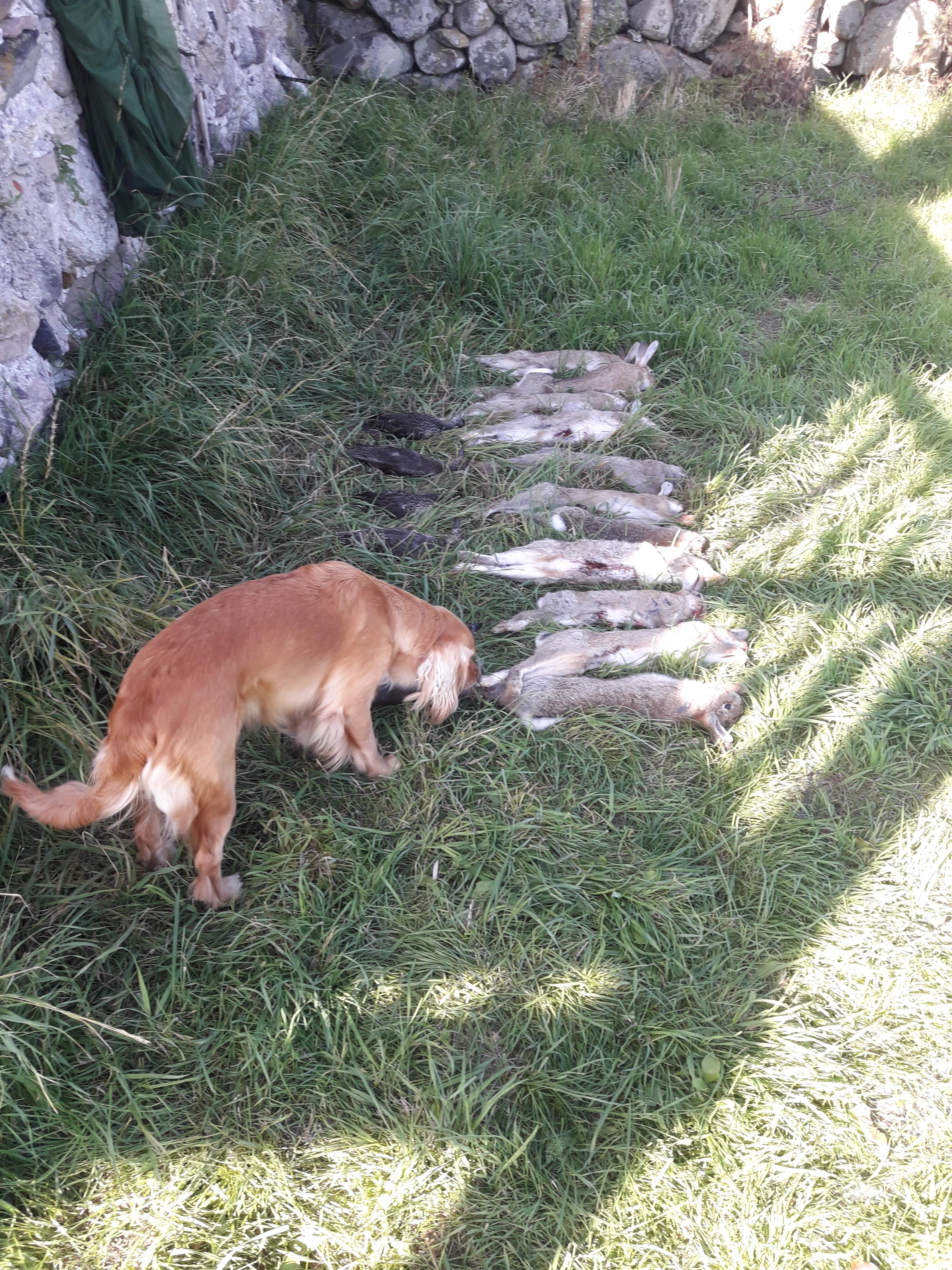 Tänkte jag skulle uppdatera lite gällande Sören också, då det var ett tag sen....Det har blivit lite jakt med honom på senhösten, framförallt grävling som är riktigt kul. Har en lada på landet där tre grävlingar huserar (har huserat ?). Första gången stod jag på pass med Sören när alla tre grävlingarna kom ut, fick inte skott på dem då...men släppte Sören efter någon minut och det blev upptag direkt. Han fick inte stopp på någon men drev dem tillbaka mot grytet igen där jag stod och lyckades knäppa en. Antar att det blir svårt att få stopp på dem när de är tre stycken samt att de har lite för nära hem. Nästa gång släppte jag på liiite kallare slag på en ensam grävling och då blev det stopp och ståndsskall som jag kunde avsluta, riktigt kul jakt!! Har även fått till ett släpp på gris, kan ju såklart inte släppa honom på frisök denna tid på året....men satt på pass (grävling) när jag hörde gris inne i en tätning bara 30-40m bort. Hämtade Sören samt skyddsväst och släppte, blev upptag och drog iväg ca 500m där det stod still en stund med grovt ståndskall men gick loss igen och Sören höll i ungefär 800m innan han släppte och kom tillbaka i bakspår till mig.