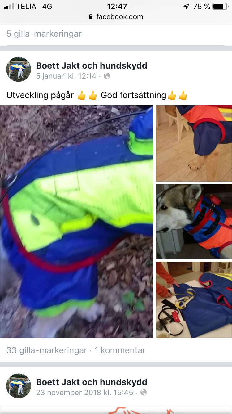 Ja, bröstet täcks bra även på Englesons lyxvariant som ger bra skydd generellt. Men det verkar som om att alla västar har en svag punkt just under eller runt bogleden där Collins blev torpederad. Det är nog bara att leva med det för det måste handla att hunden ska kunna röra sig obehindrat. Aktiv eller passiv säkerhet? Boetts utvecklingsarbete enligt Jocos inlägg är intressant men jag funderar över rörlighet och om det inte är risk att hunden trasslar in sig eller fastnar. Ju mer jag sätter mig in i frågan desto mer lutar jag åt att det jag kan uppnå med en annan väst är bättre passform och därmed bekvämlighet och kanske lite bättre rörlighet och marginellt förbättrat skydd. Får leva på hoppet eftersom våra cocktlar är lite överjordiska väsen. Gudabenådade hundar med änglavakt??.