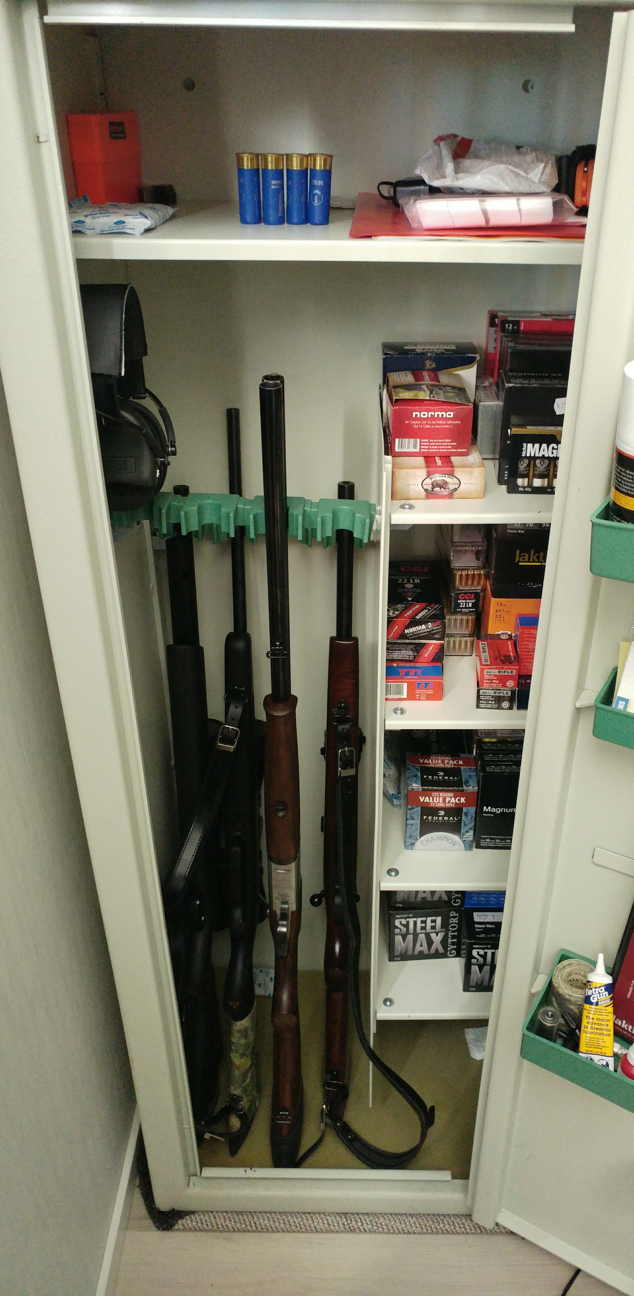 Publicerat Juni 4, 20178 yr Skåpet tomt är lite framtungt, jag löste det enkelt genom att köpa en rund hallmatta för att ha under, vek längst ut för att få en lutning några grader bakåt. Blev också fundersam av texten inuti, köpte ju ett 150kg skåp för att just slippa bulta. Så fort du fyller med några bössor och lite ammo så blir den stabil som berget. Mycket rymligt och trevligt skåp.