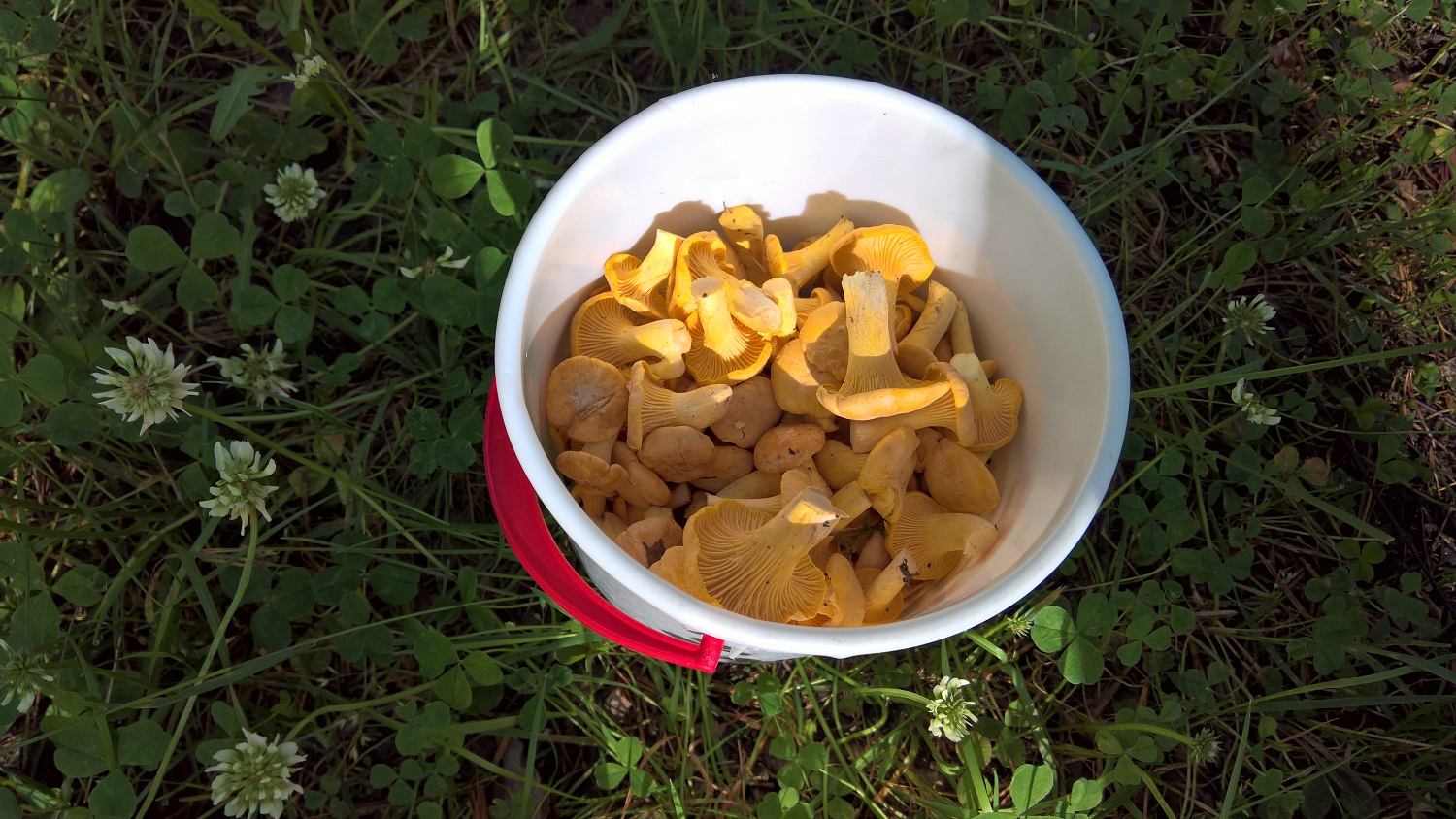 Tog med mig 20-liters dunken och sökte kantareller. 3 timmar var jag i skogen och det enda jag såg som var av intresse var en gammal fet rådjursget. Den hade säkert 20 liter kantareller i magen.