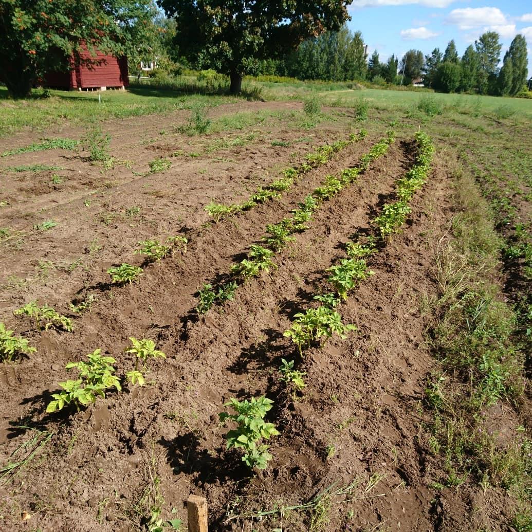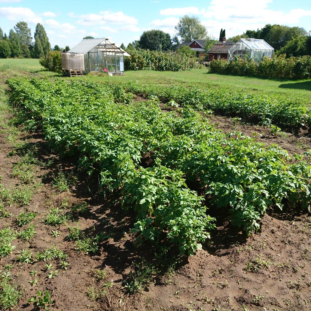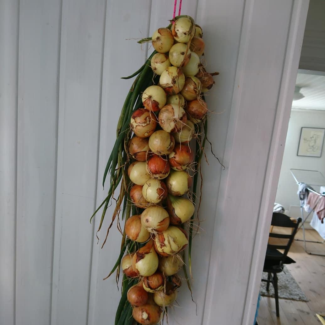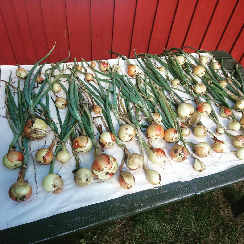 Idag blev det skörd av den gula löken, samt några timmars kärlek till det brutalt eftersatta potatislandet.