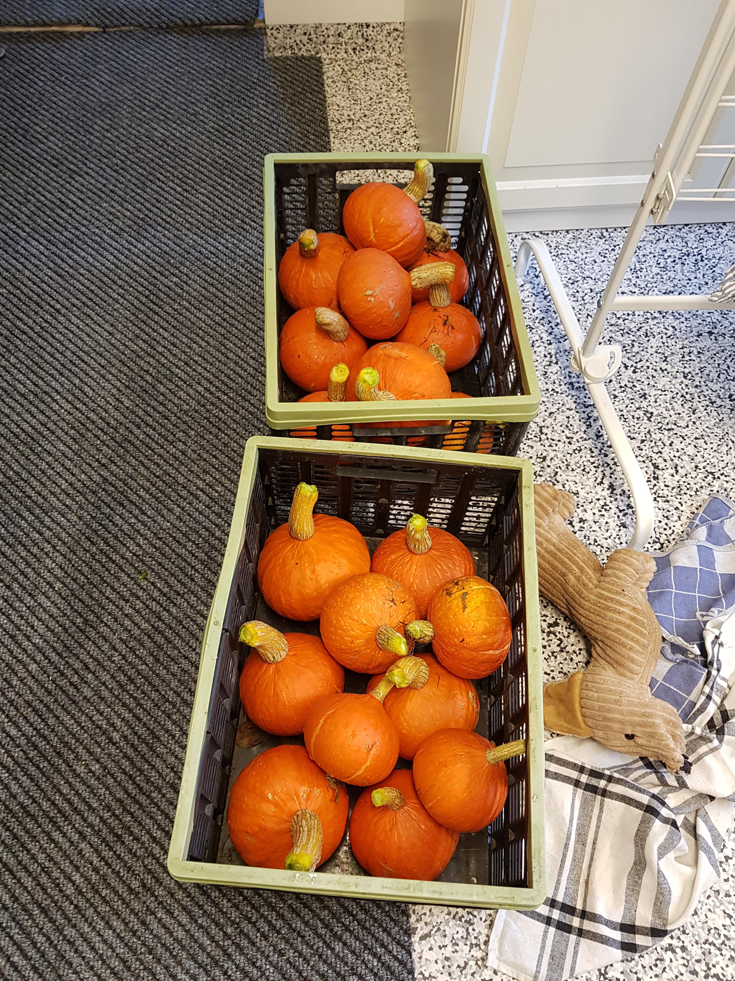 Skörden fortsätter, vintersquashen smakar lite som sötpotatis om man ugnssteker dem.