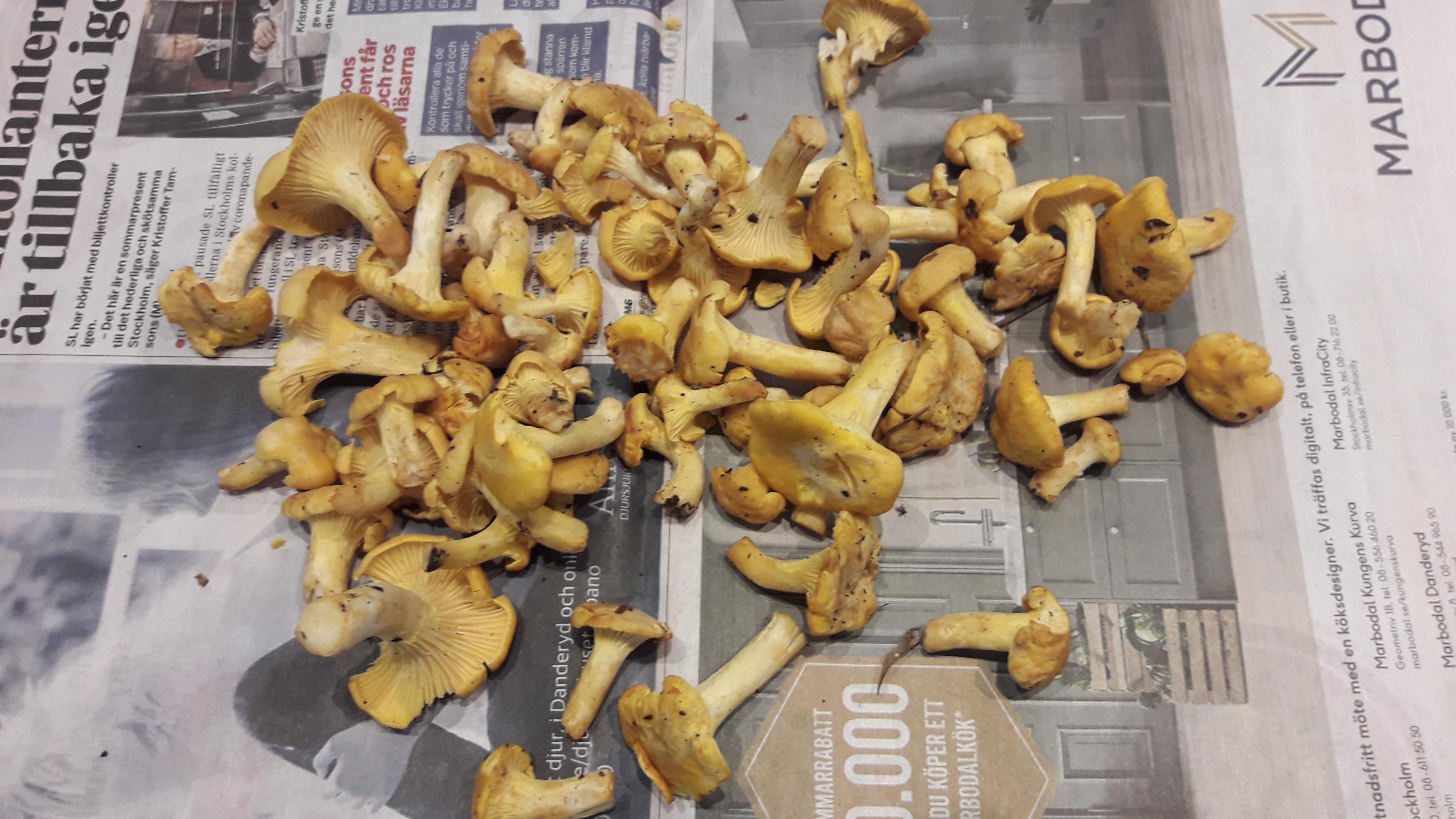 Var ute igår och kom hem med 2 l svamp, hälften gula kantareller och hälften Karl-Johan.