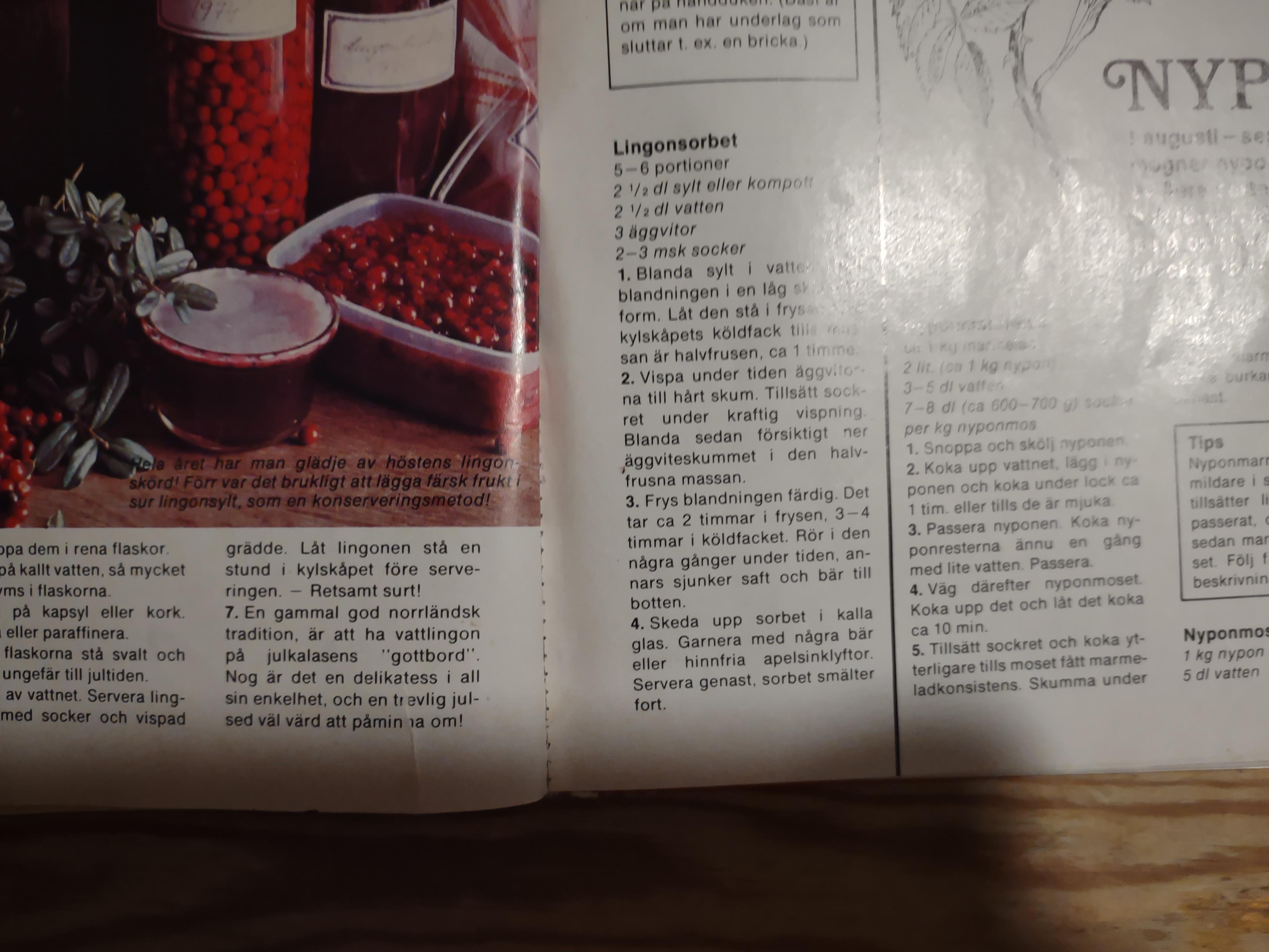 Nej, det har jag inte! Du kan ju läsa lingonsidorna i fruns gamla sylt & frukt bok. Den hade hon när vi träffades.:thumbsup: Säg till om du vill ha någon tydligare bild på recept.