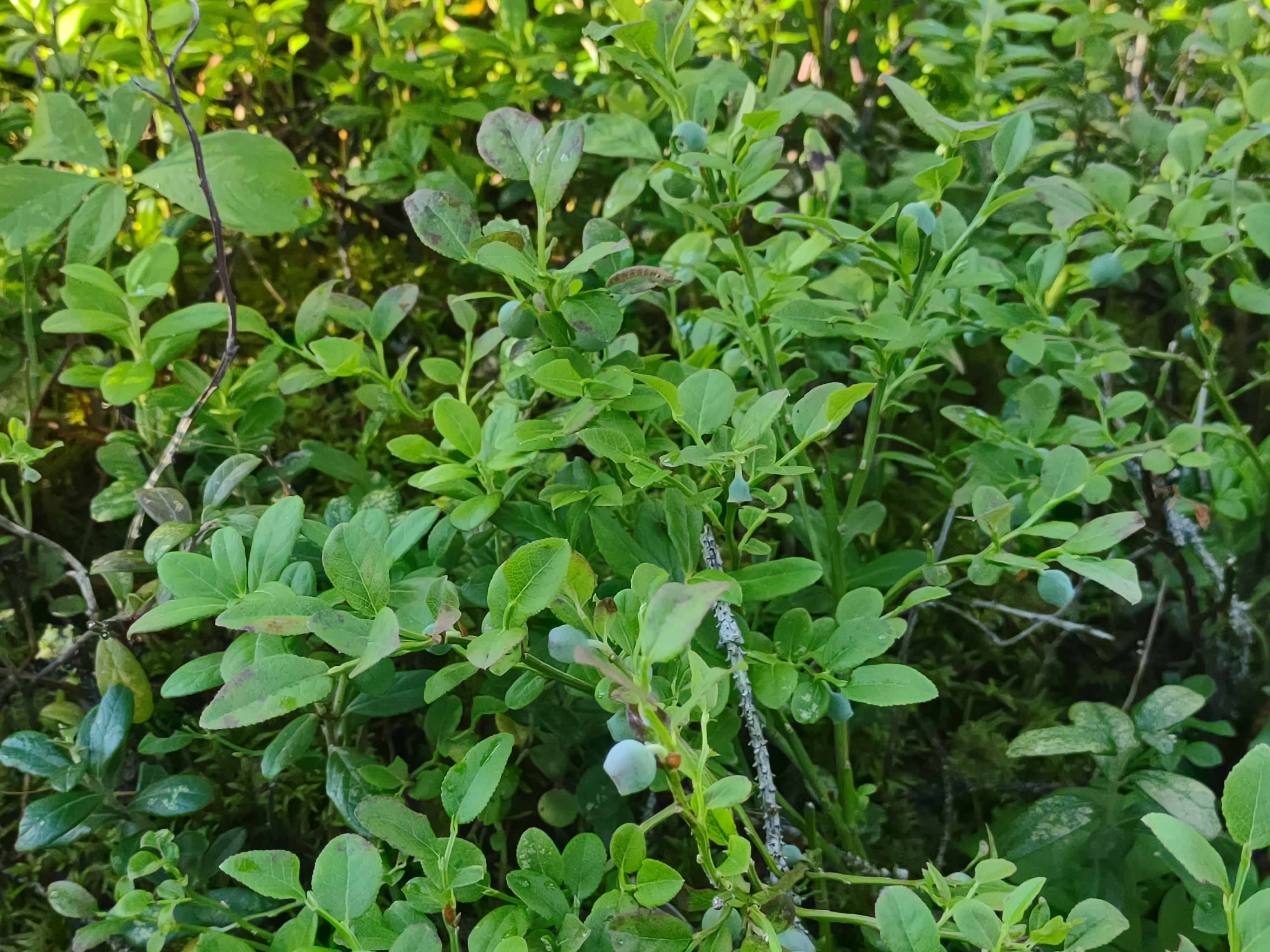 Hur det bli med blåbär är lite svårt att säga ännu. För omogna.