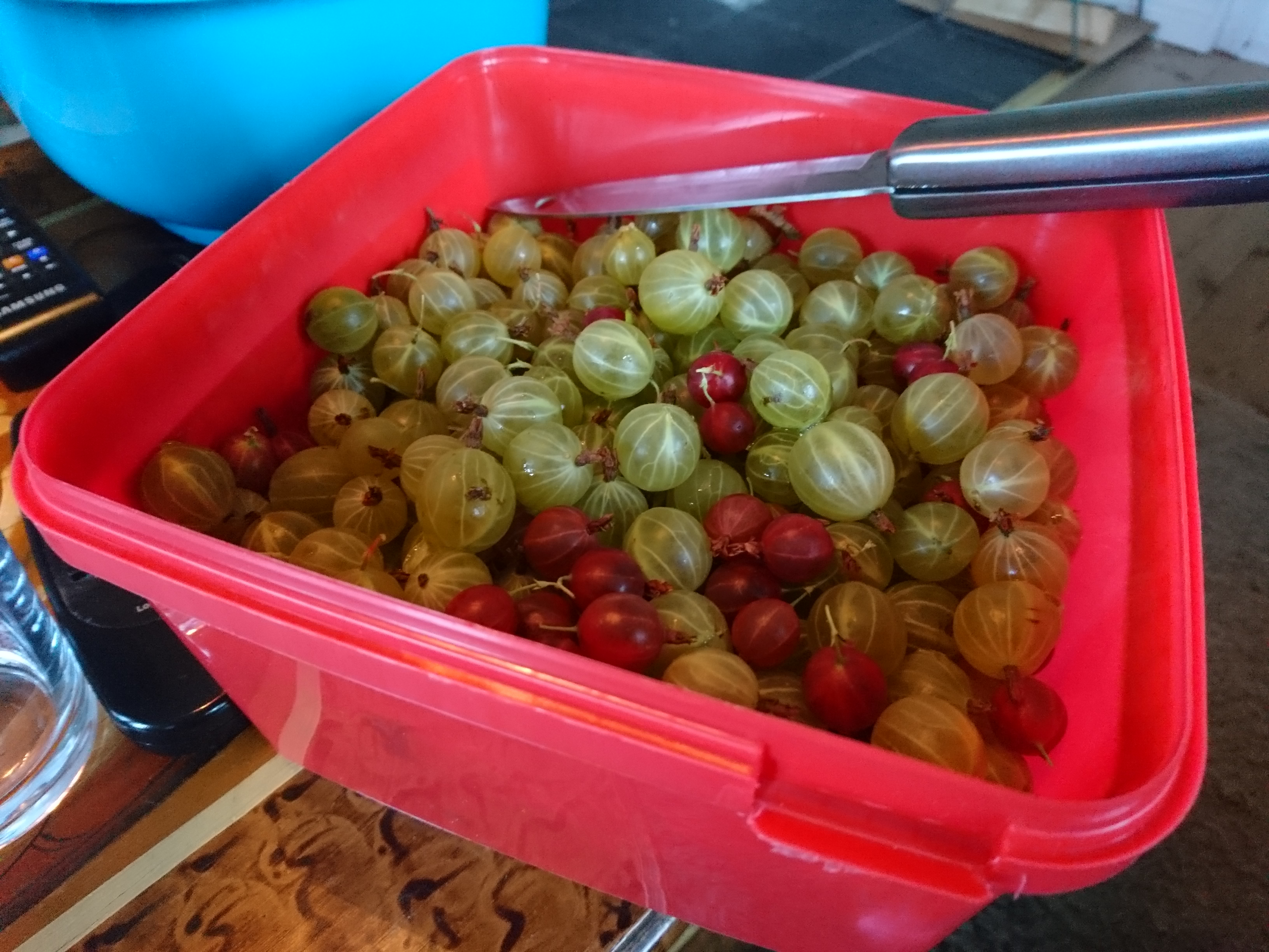 Blev att plocka och rensa 6 kg krusbär idag, både röda och vita. Gött att ha i kvargen till frukosten :)