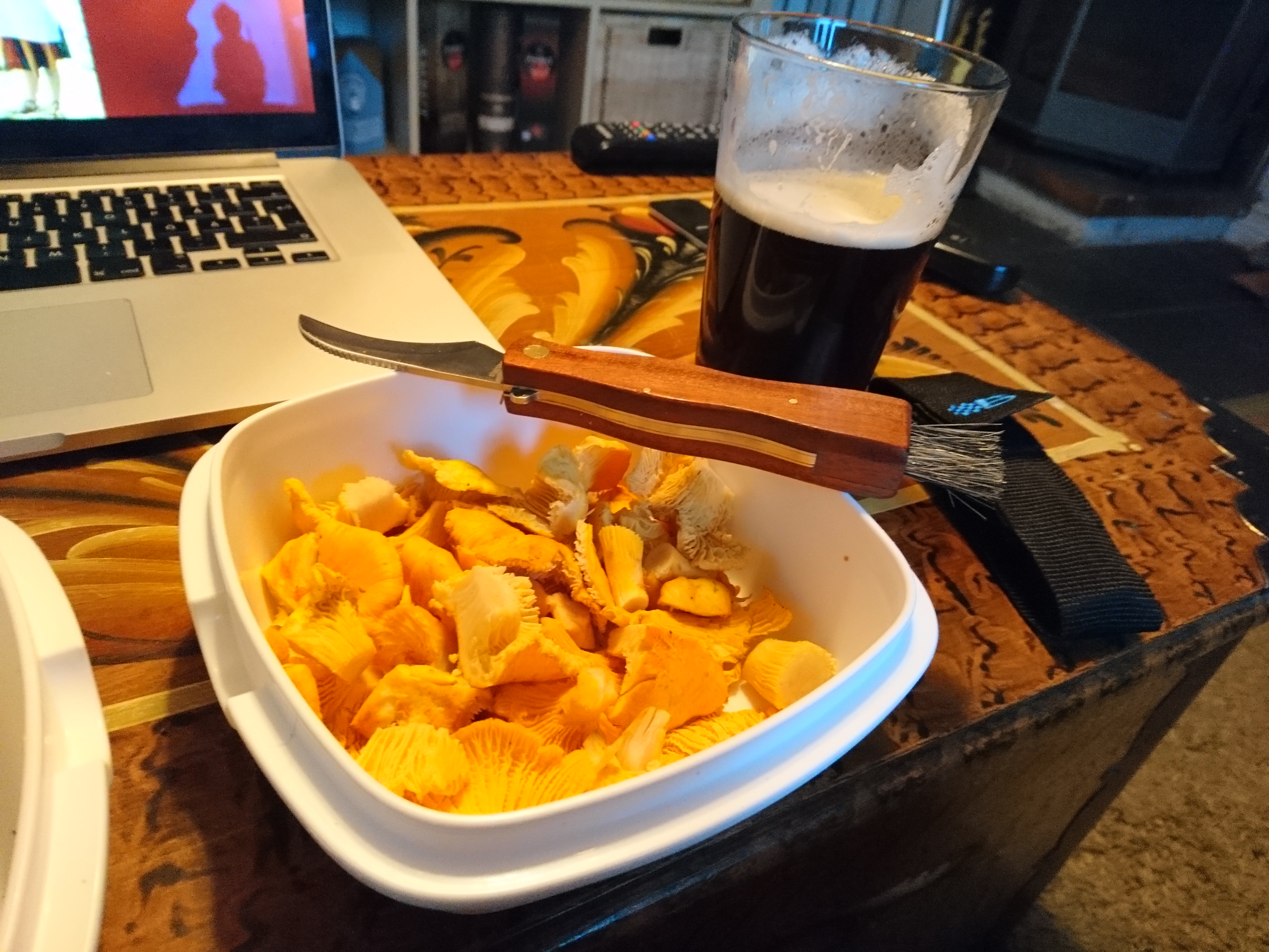 • Tre timmar i svampskogen idag. Fina svampmarker på en av såterna vi jagar på, så vi gick runt där och jag passade på att kolla till ett par pass. Sjukt mycket trattkantareller! Det blev som knark