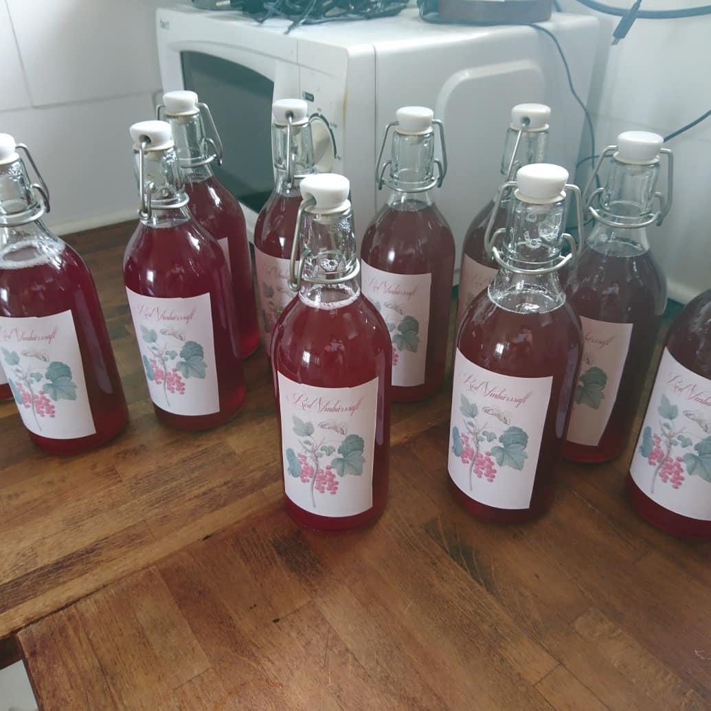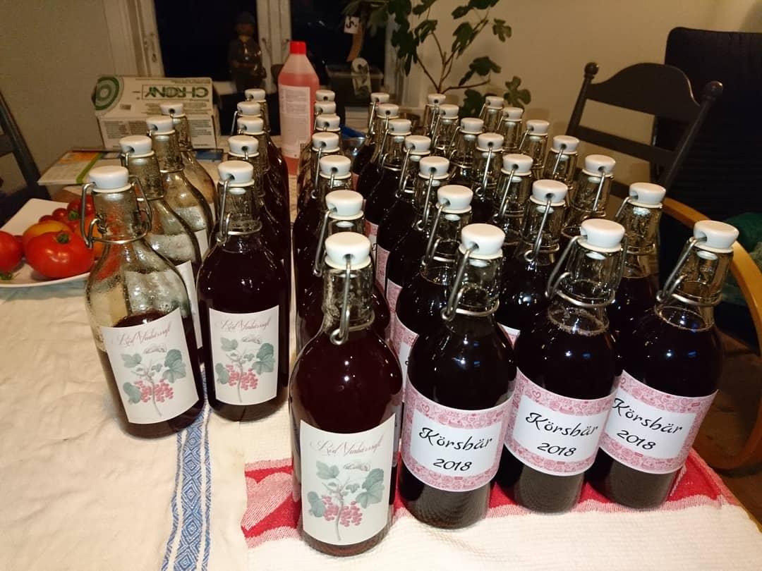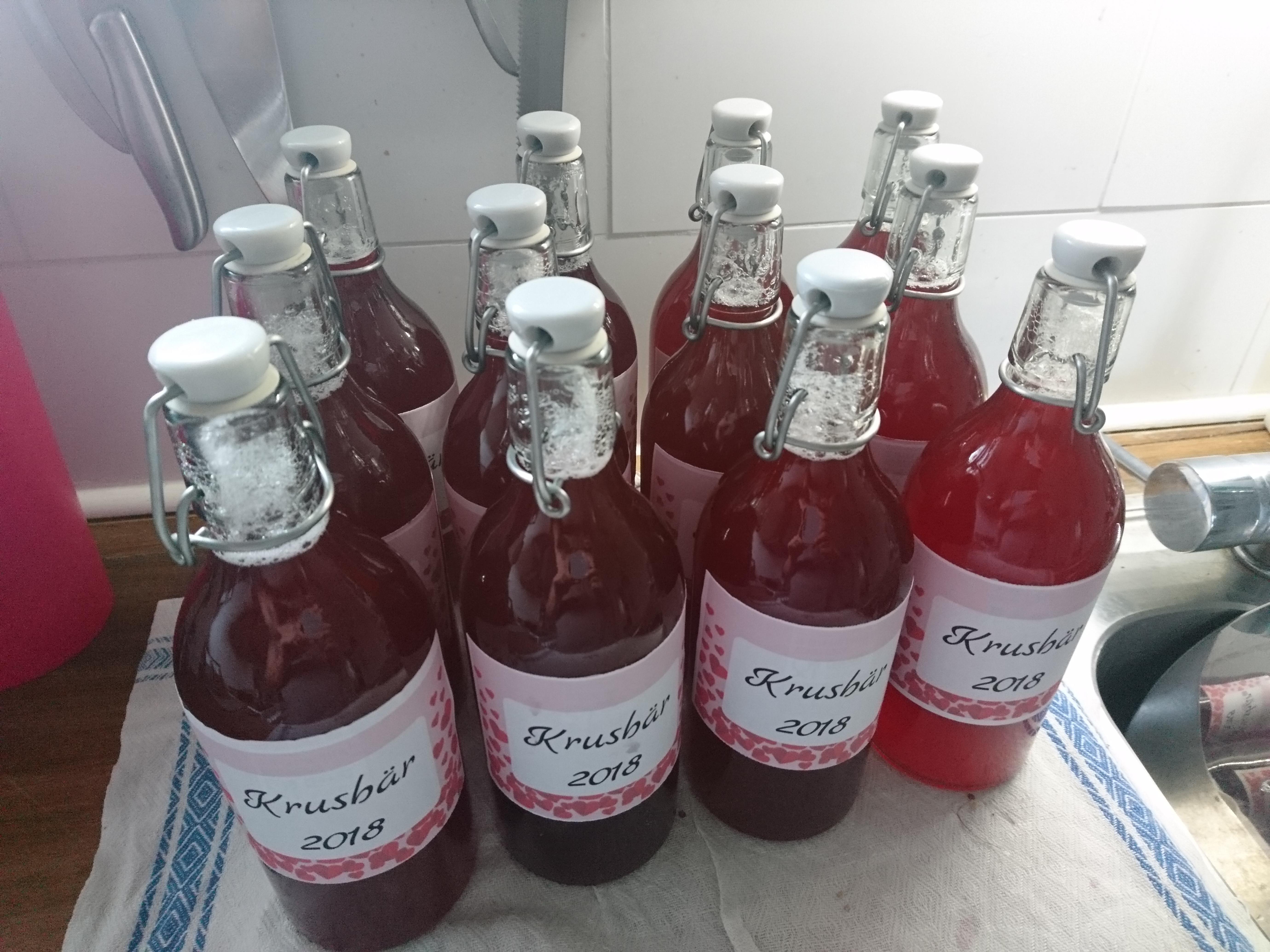 Nu är jag inne i safttagen rejält. Har fått plocka rent några grannars röda vinbärsbuskar och 20 liter körsbär från min farbror. Blev 12 liter körsbärssaft och hittills har det blivit 13 liter röda vinbär.