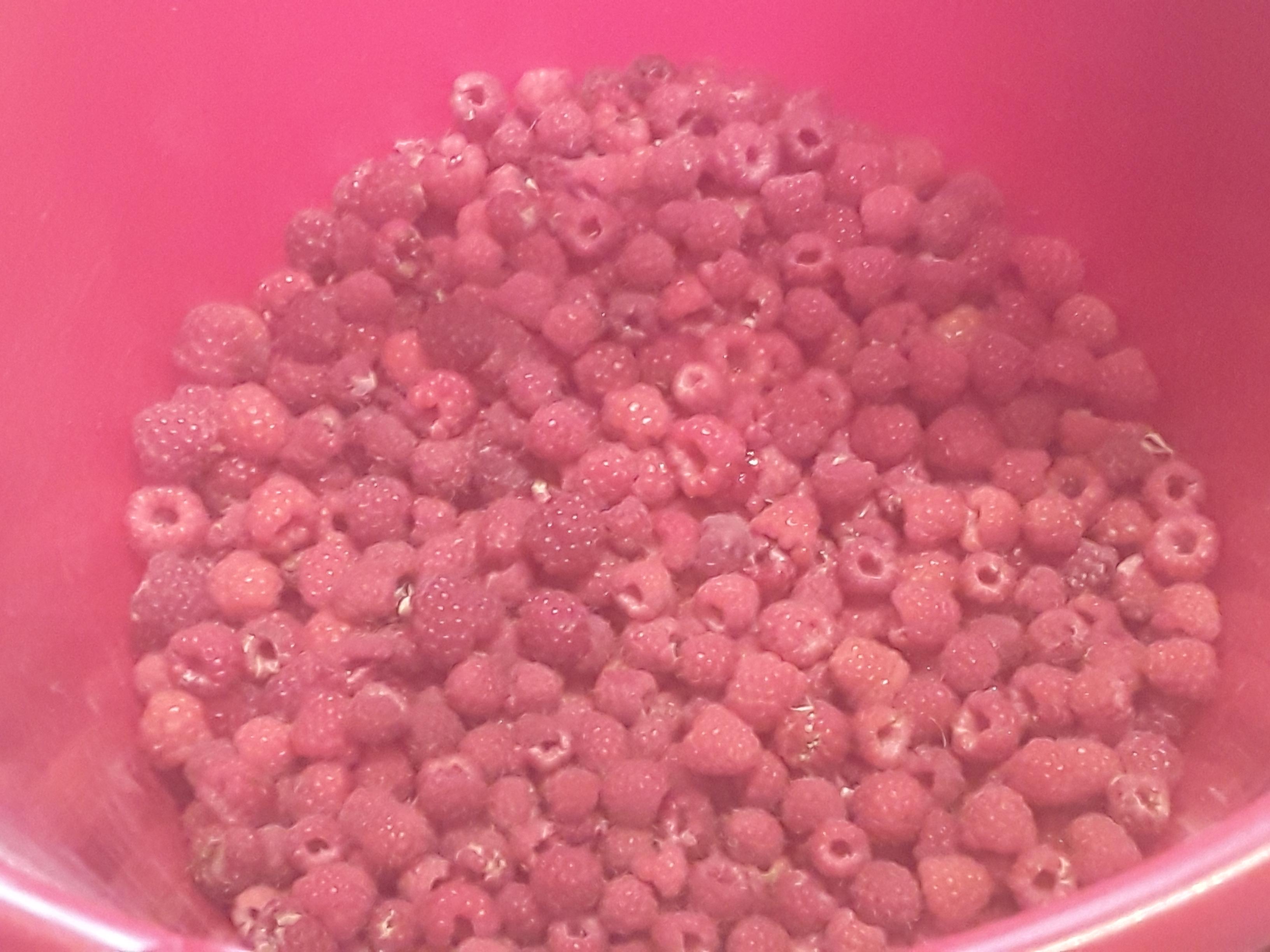 Idag har jag plockat lite drygt 2 kg hallon till frysen
