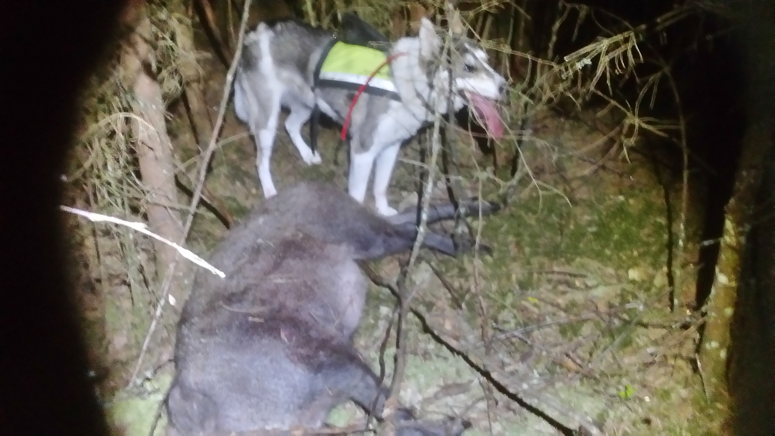 Publicerat Juli 26, 20178 yr Detta är en populär post. En jaktkompis fick ut två halvstora grisar på en nyslagen havreåker. Sköt ett skott på den ena. De rusar då över åkern och in i en nyröjd planteringen. Var en del blodavstryk där den gått in i planteringen. Rätt högt och doft av buk. Han provade att spåra med sin wachtel, men det gick inte så bra och han blev osäker när han inte hittade mer blod. Han ringde då in oss. På plats så väljer jag Funny och börjar spåra med henne. Vinklar vänster nästan direkt och kommer ur slyet. Troligen den friska grisen så jag börjar om. Går mer rakt in nu men jag hittar inga spårtecken och Funny ringar tillbaka igen. Vet inte om det var att där varit en hund tidigare eller om det var det nerröjda slyet som störde henne för funkade inte alls. Jag bestämmer mig för att släppa där de gick in. Hon gör en runda åt vänster men kommer tillbaka och går in igen. Rakt fram nu och efter hon passerat där hon vände. Så börjar hon tråckla iväg. Syns att hon har rätt spår nu. Så efter 600m kommer upptaget. Bomfast direkt så det är bara traska. Står i kanten på en äldre självföryngring. Och grisen är nog rätt dålig för jag kan gå rakt på och avsluta direkt. Funny gjorde som vanligt vad hon skulle. Är det träff i grisen så letar hon rätt på den. Framförallt om inte husse går efter och hindrar henne. Var mycket riktigt en bukträff.