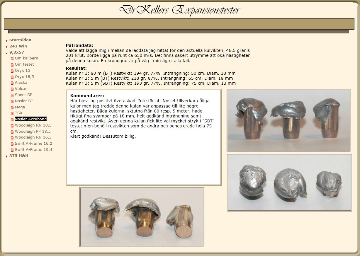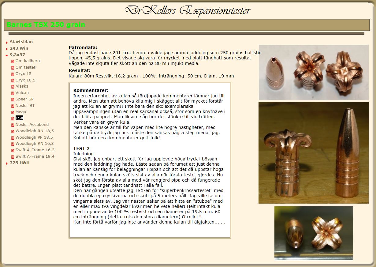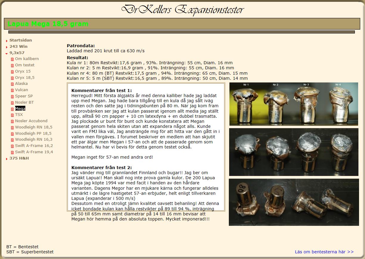 Publicerat November 8, 20178 yr Detta är en populär post. Efter att flertalet personer eftesökt denne herres intressanta hemsida (som stängts ner) med diverse välgjorda expansionstester så ha jag pm:at med självaste DrKeller. Han mailade mig sitt sparade innehåll så med Johans tillåtelse kan jag glädja er att återigen kunna delge er dessa tester... Bara för sakens skull så frånsäger sig både Johan och jag oss allt ansvar vad gäller publicerade laddata i dessa tester! Men det är ju som vanligt alltid var mans/kvinnas eget ansvar då det handladdas... Håll till godo!