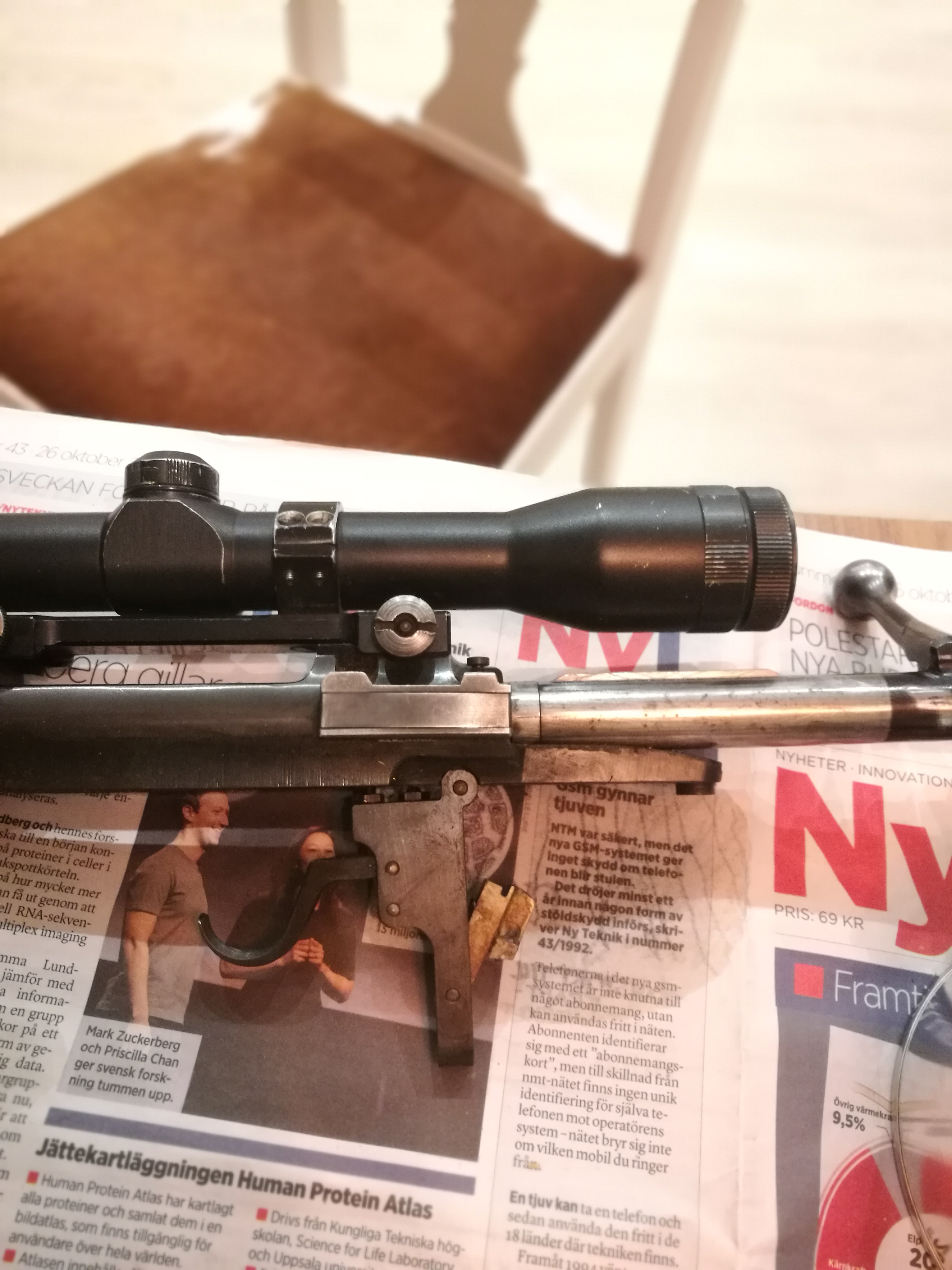 Publicerat November 22, 20178 yr Borsta rent med typ en dammvippa eller dammsug efter du har gnuggat med stålull. Det har en tendens att leta sig in i porerna eller sätta sig i olja som inte har torkat ännu, och sen när det väl har torkat så ligger det små stålfibrer under oljan. Det är lite amatörmässigt. Fin bössa. Kul att den får kärlek. Hade själv velat ha en om jag inte vore vänsterskytt.