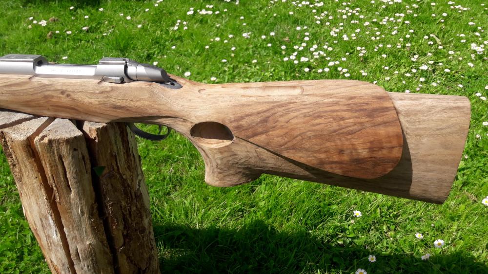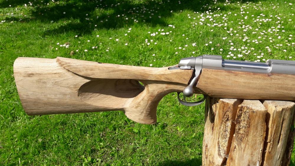 Ser att det finns till SAKO L61R. Hade suttit fint med en med rak ådring som sveper genom hela stocken och med Fiddleback mönster till 375:an! :)