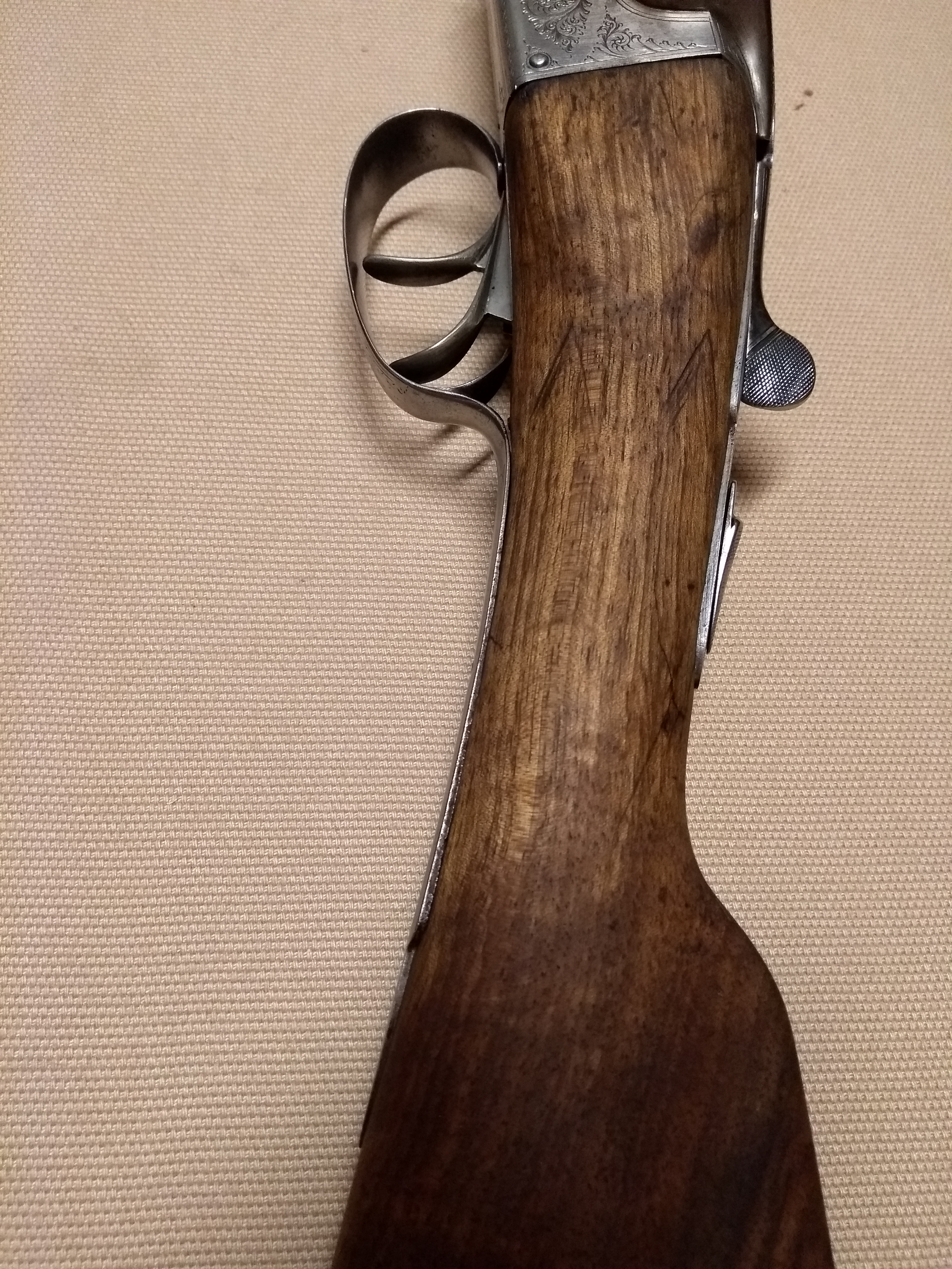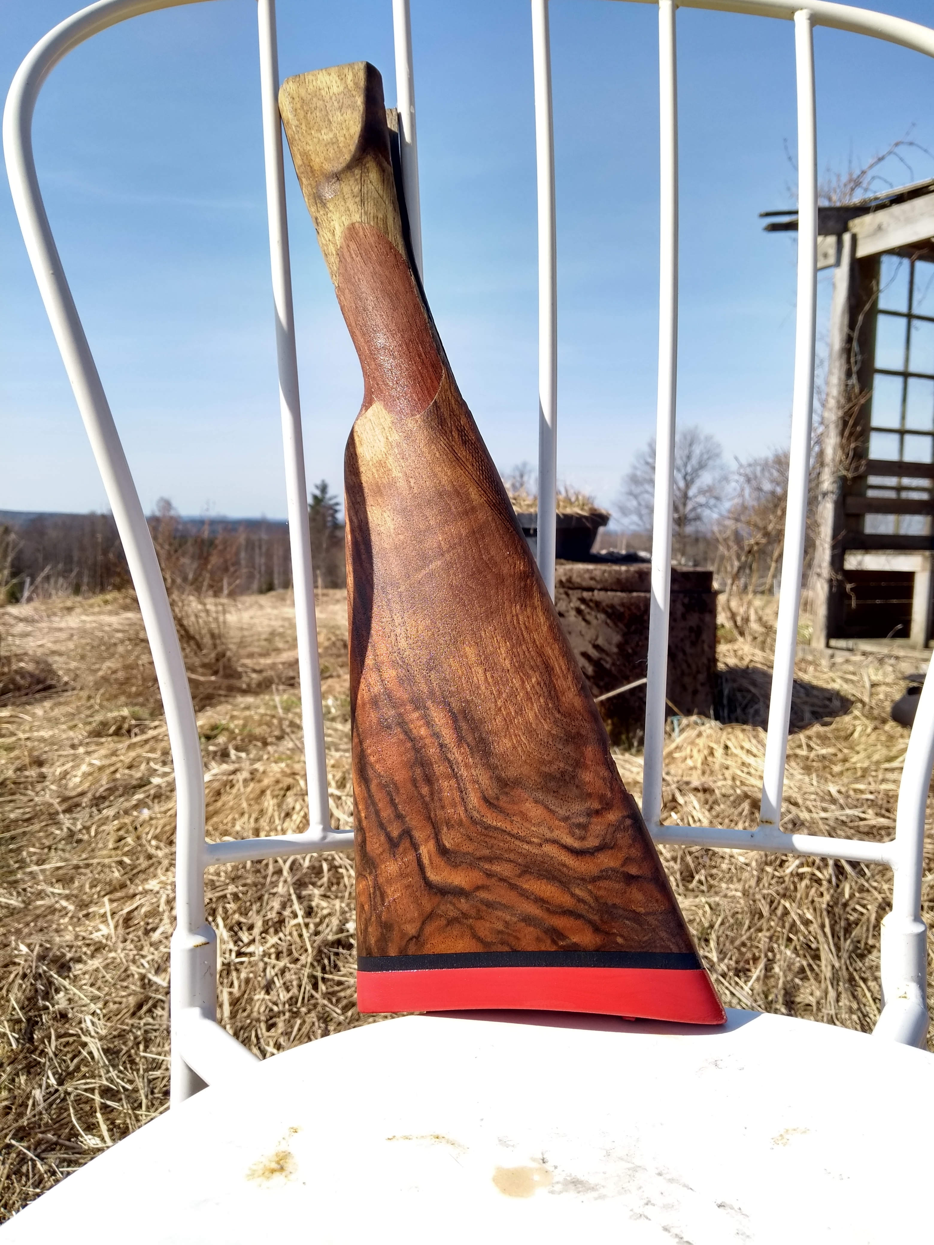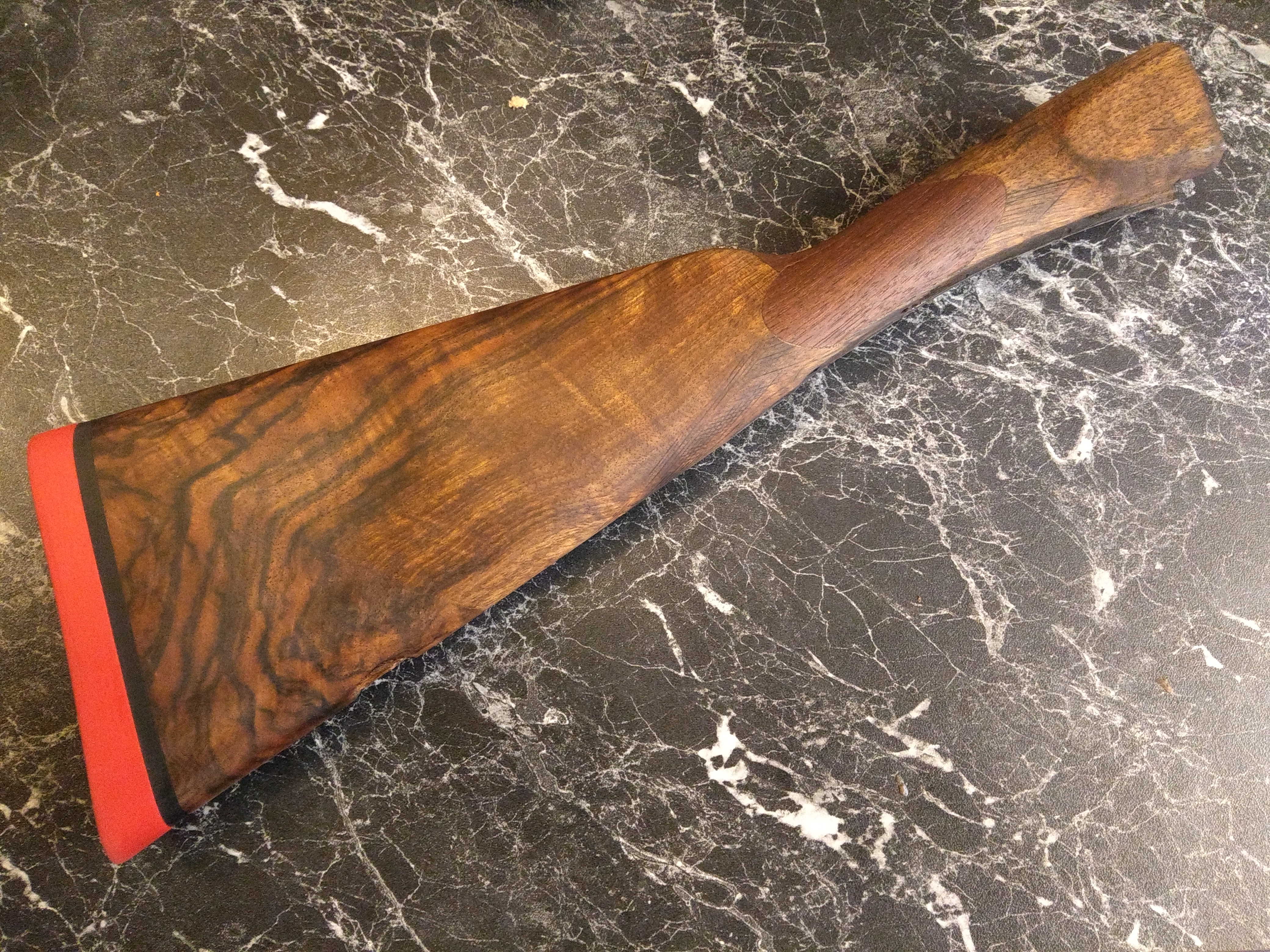 Publicerat April 8, 20188 yr Författare Nu avslutar vi den här helgen med en sista bild: Detta är då den dåliga sidan där jag har lagat och hållt på. Stannade efter tredje omgången med alkanetrot. Med största sannolikhet så åker jag på att göra en ny förstock, jag ska bara montera tillbaka kolven och se hurpass den sitter först. Vem vet, det kanske passar med en hopplöst sliten bit i framkant med, men om jag ska göra en ny så vill jag ha ungefär samma färg på dom och det blir enklare att få till om man ser hur det ser ut innan oljeboning. /Patrik