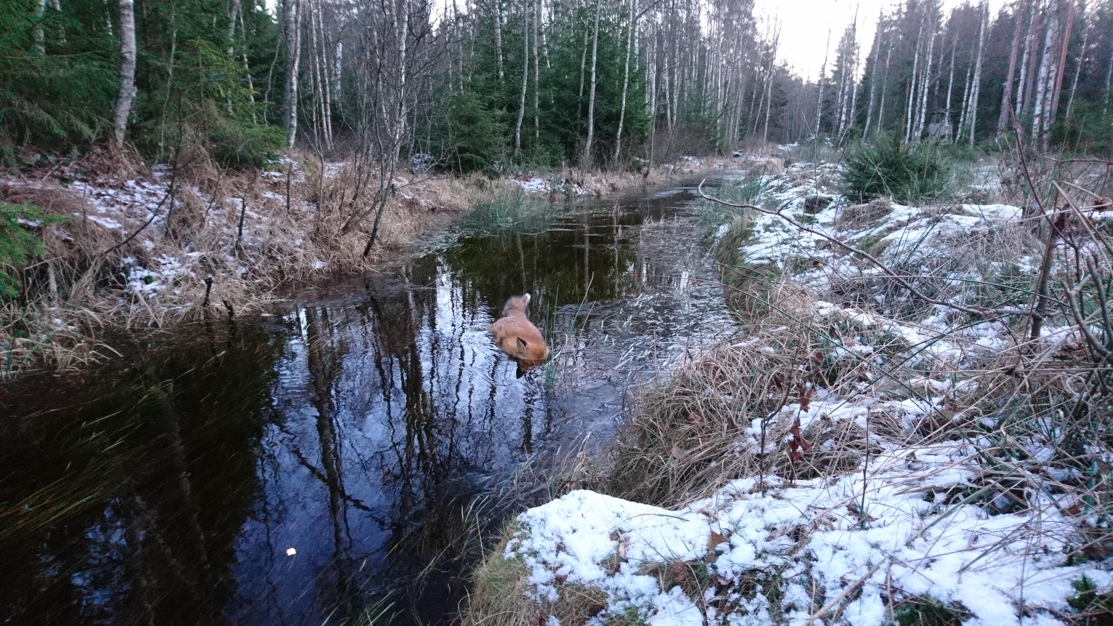 Publicerat Januari 14, 20197 yr Detta är en populär post. Snabbt som rackar’n, medans det är ljust, fixa 1 termos me kaffe å plocka me trippel 2:an ut en stund i bushen. Sitter ca timmen när ja skymtar denne räv på 80m. Har en smal skjutgata å således kort om tid. Plockar snabbt upp pangen. När jag såg han var han på väg till en kort stubbe för å kolla läget. När ja är klar för skott har han klivit ner från stubben å går ifrån mig. Förväntar mig att han ska upp på dikeskanten, på anslutande dike (som en t-korsning), 2m bort. När huvud å överkropp syns i siktet, ’musar’ ja till med läpparna. Räven stelnar till å skottet går. Mickel kom ej över till andra sidan utan gled helt ovetande ner i diket. För mig en stunds avkoppling som kontrast till bla val-sörjan. /P
