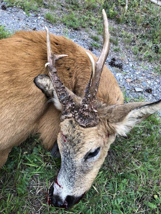 Publicerat Augusti 28, 20196 yr Detta är en populär post. Kanske jag dom är blind, men jag hittar inget ämne om bockjakten 2019? Här är lite om min premiär helg som spenderades i vår jaktstuga i Småland Min premiär morgon på ett pass vid en stubbåker. Började med en bock som kom förbi 5 minuter innan den var lovlig att skjuta. Ingen jätte stor bock men då jag aldrig skjutit bock på just premiär morgonen så var det lite surt.. 16e kvällen sköt jag ett vildsvin på ca 40 kg . Satt ute på en vall när det kom sugga med 7 ganska jämnstora och en lite mindre ”pelle gris” så jag sköt den lilla. Tycker bara lite synd om pinnbocken som gick mellan mig och vildsvinen, den blev väl döv. Transporten hem till slaktboden gick smidigt med min nya fyrhjuling ? 17e morgon var det lugnt, släppte 2 mindre bockar och såg några hondjur. förmiddagen och middagen ägnades åt kantarell plockning och duvjakt. 17e kvällen så satt jag på ett hygge, det hade regnat hela dagen och slutade först klockan 18 så förväntningarna var på topp. Efter 2 timmars väntan utan ett liv så provade jag att locka som ett sista försök innan mörkret. Efter en serie med kontakt och några hetsläten så kom bocken i full fart, dock så kom den bakifrån vilket jag inte hade räknat med. Den stannade på 50 meter och spanade intensivt åt mitt håll, jag som satt vänd åt andra hållet och med geväret på tornkanten kunde inte göra annat än att vänta. Bocken sätter återigen full fart mot tornet, medans den är skymd bakom en gran så vänder jag mig snabbt 180 grader och gör mig klar. När den är inne på 10 meter så vinklar den upp och börjar gå i raskt tempo med bredsida mot mig, men den är skymd av björk sly. Jag ser min lucka mellan 2 små björkar och när bocken kliver ut där så visslar jag till lite försiktigt. Istället för att stanna så blir den skrämd, hoppar upp och landar bakom nästa björk sly. Nu stirrar bocken rakt upp på mig och jag vet att det är max några sekunder kvar innan den definitivt kommer att rusa iväg. Halsen var dock fri och eftersom det var så nära håll och jag vet exakt hur geväret tar så valde jag att skjuta i halsen. En fin lite 6 taggad skogsbock men det ena hornet var avbrutet nästan ända nere vid rosen kransen.